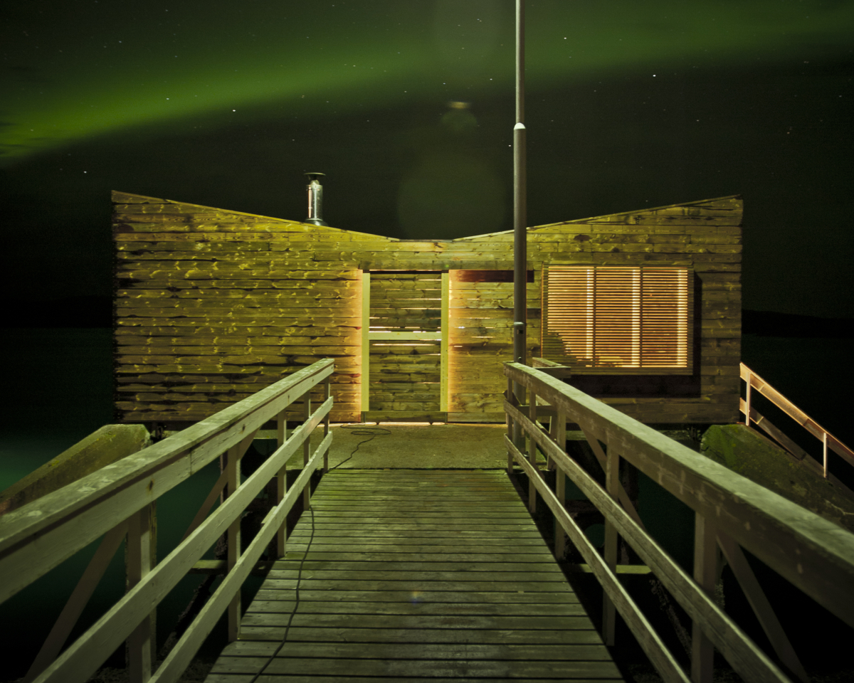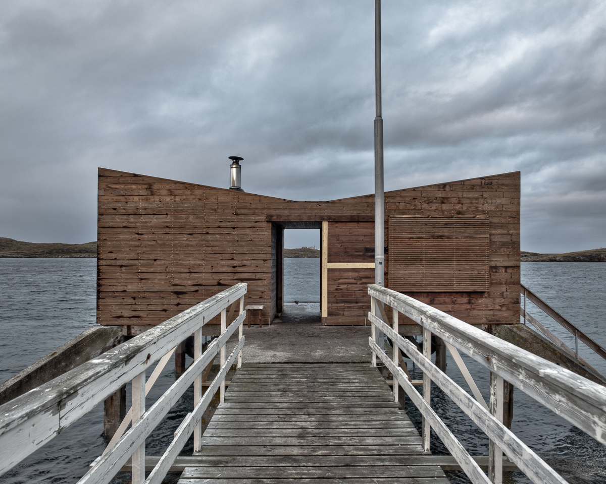 This seaside sauna on Fleinvær Island in North Norway, part of a public artist-in residence centre for composer Håvard Lund, can be seen as a cultural act of reinvigorating and re-approriating the bathing culture in the area. The students designed and built in a period of three weeks a carefully studied small sauna building that not only functions perfectly for bathing but is also built well down to details to last in the hard North Atlantic coastal weather.