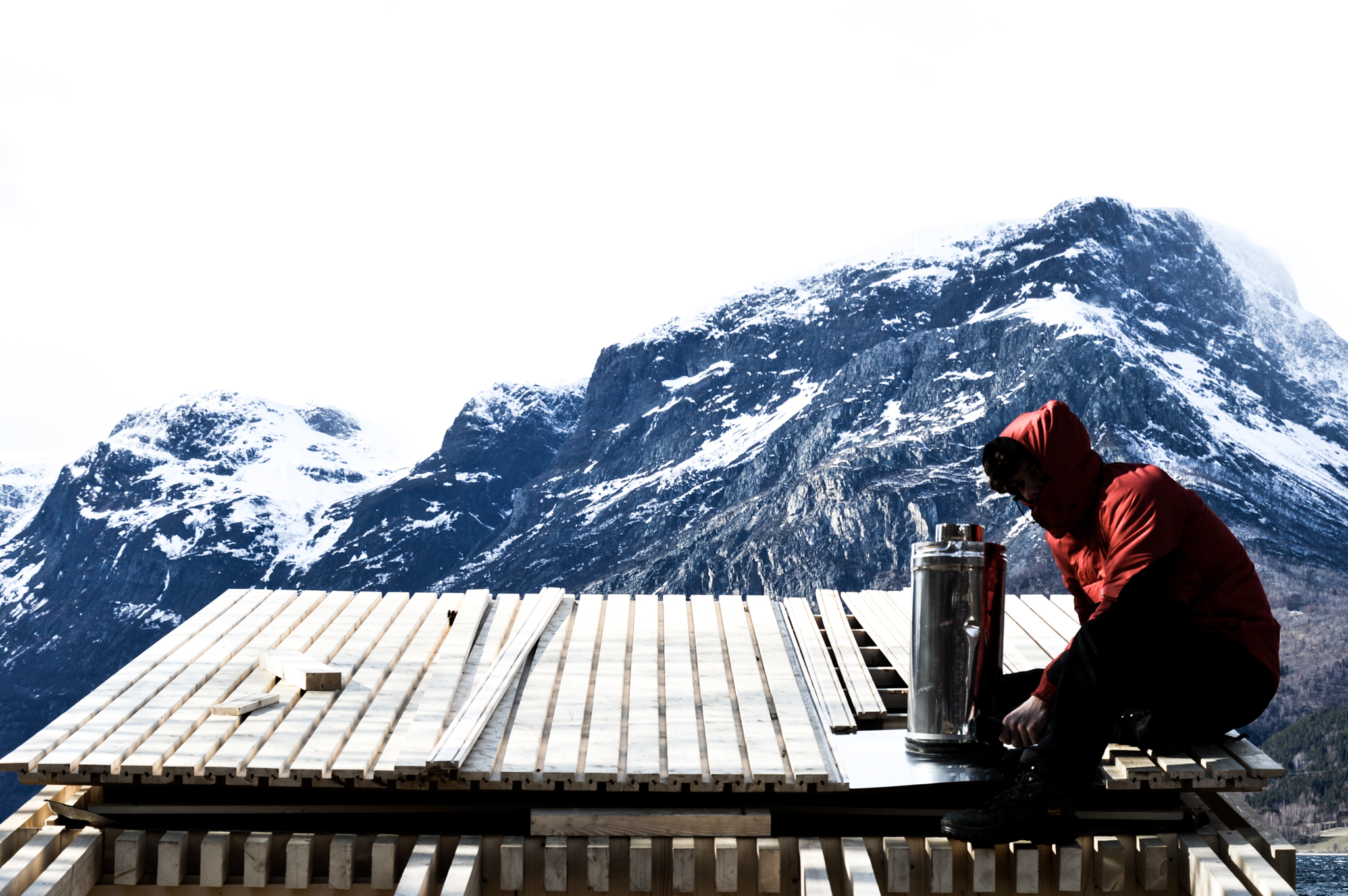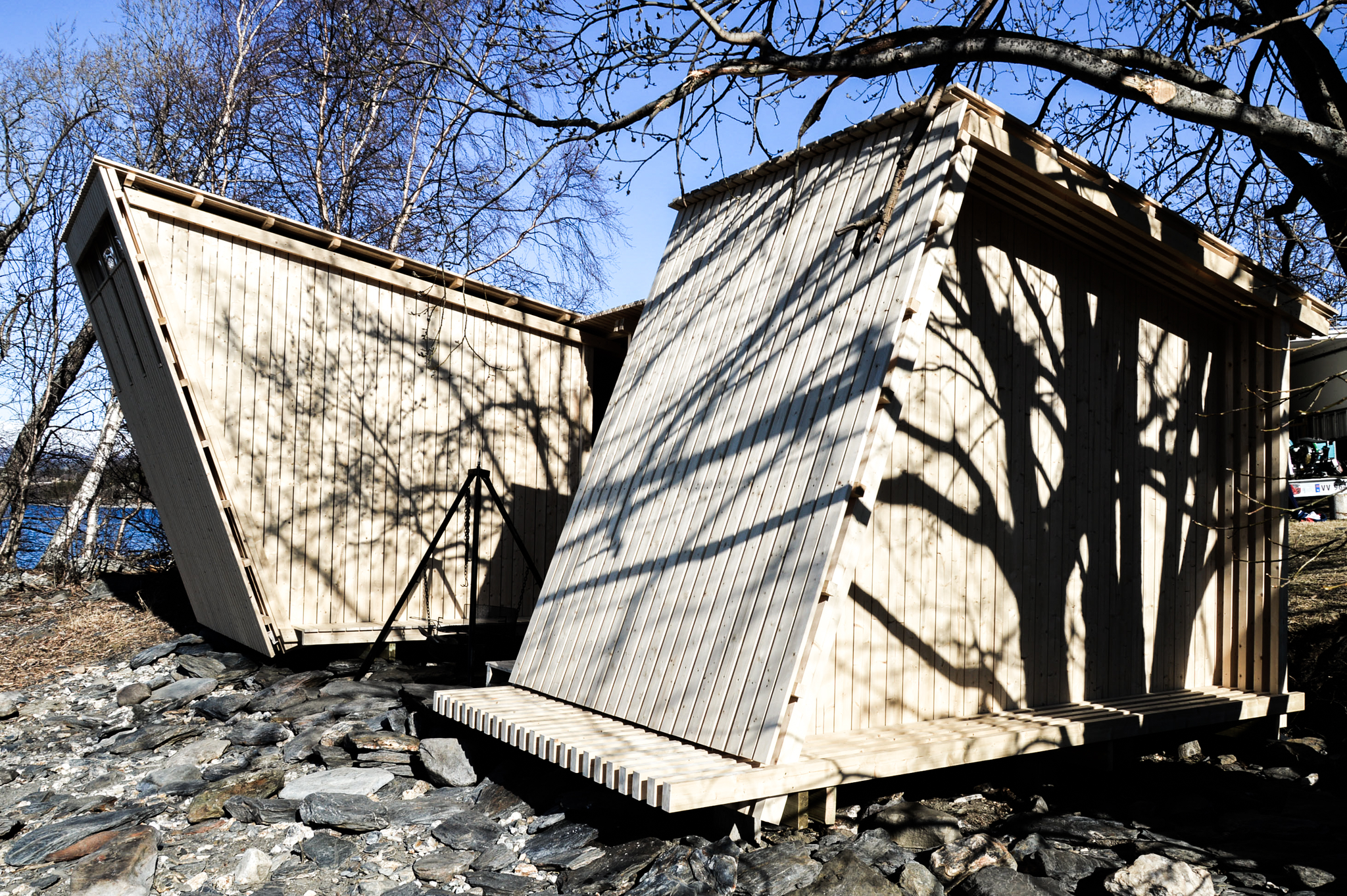 The craftsmen for the job were 15 architect students from the Norwegian University of Science and Technology in Trondheim and the constructing process took place within ten days in April 2015.
