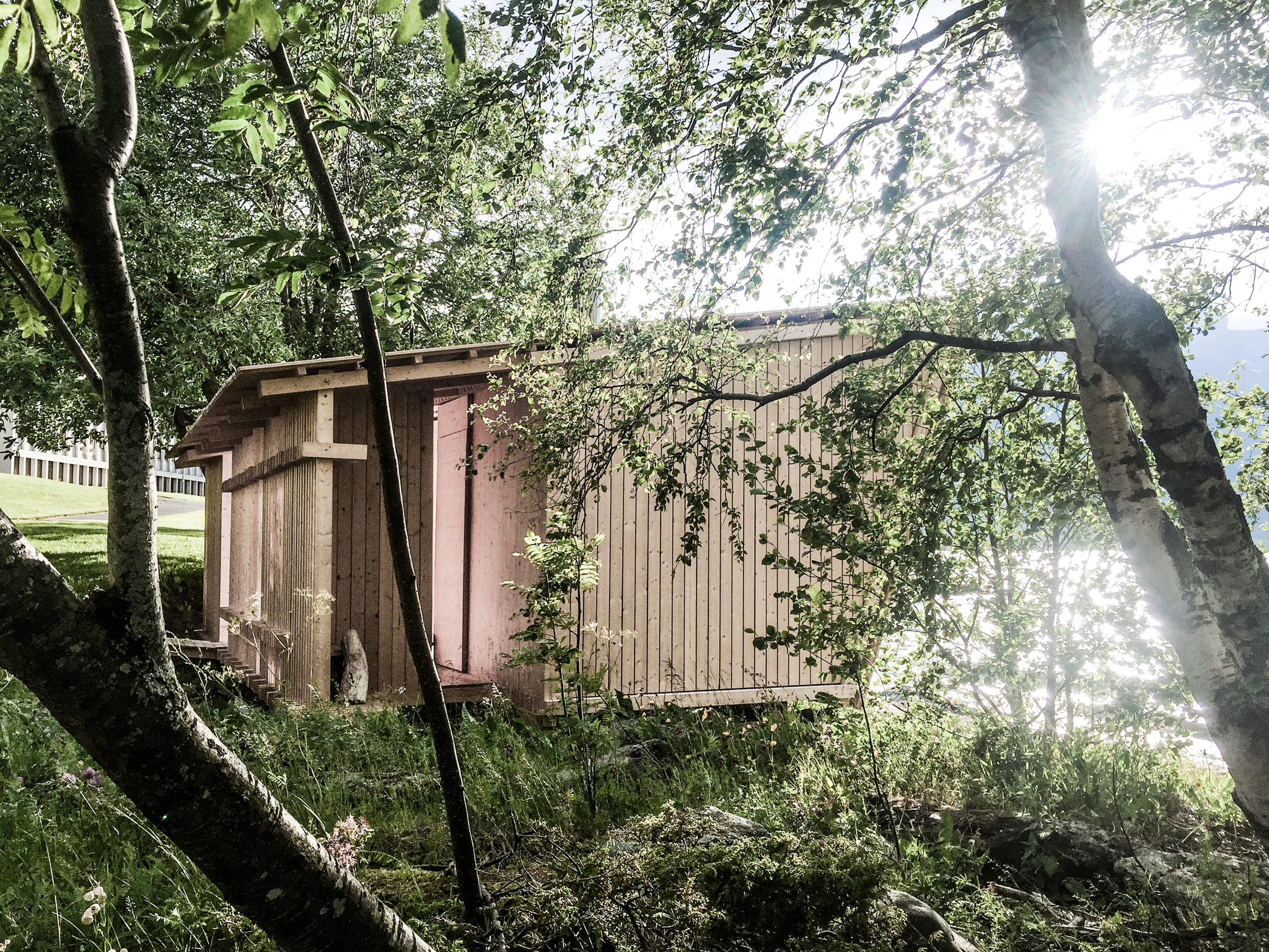 Designing and constructing the sauna is part of a half-year Master course, named AAR4623 and AAR4904 – Topology, Typology and Tectonics. It is initiated by the Department of Architectural Design, History and Technology at the Faculty of Architectural Design and Fine Art at NTNU. The course aims to develop a tectonic and a site- specific approach to architecture. It is about a basic understanding of architecture and about the global environmental and social challenges of our time. The intention is to strengthen the professional skills of the architects, in order to respond to the needs of society today. The American poet Ezra Pound (1885 – 1972) wrote: “Music degenerates if it moves too far away from dance, and poetry shrivels if it becomes too remote from music and song. In the same way, architecture has its own origin, and if it moves too far away from it, it loses its effectiveness. The renewal of an art, means rediscovering its deepest essence.”
