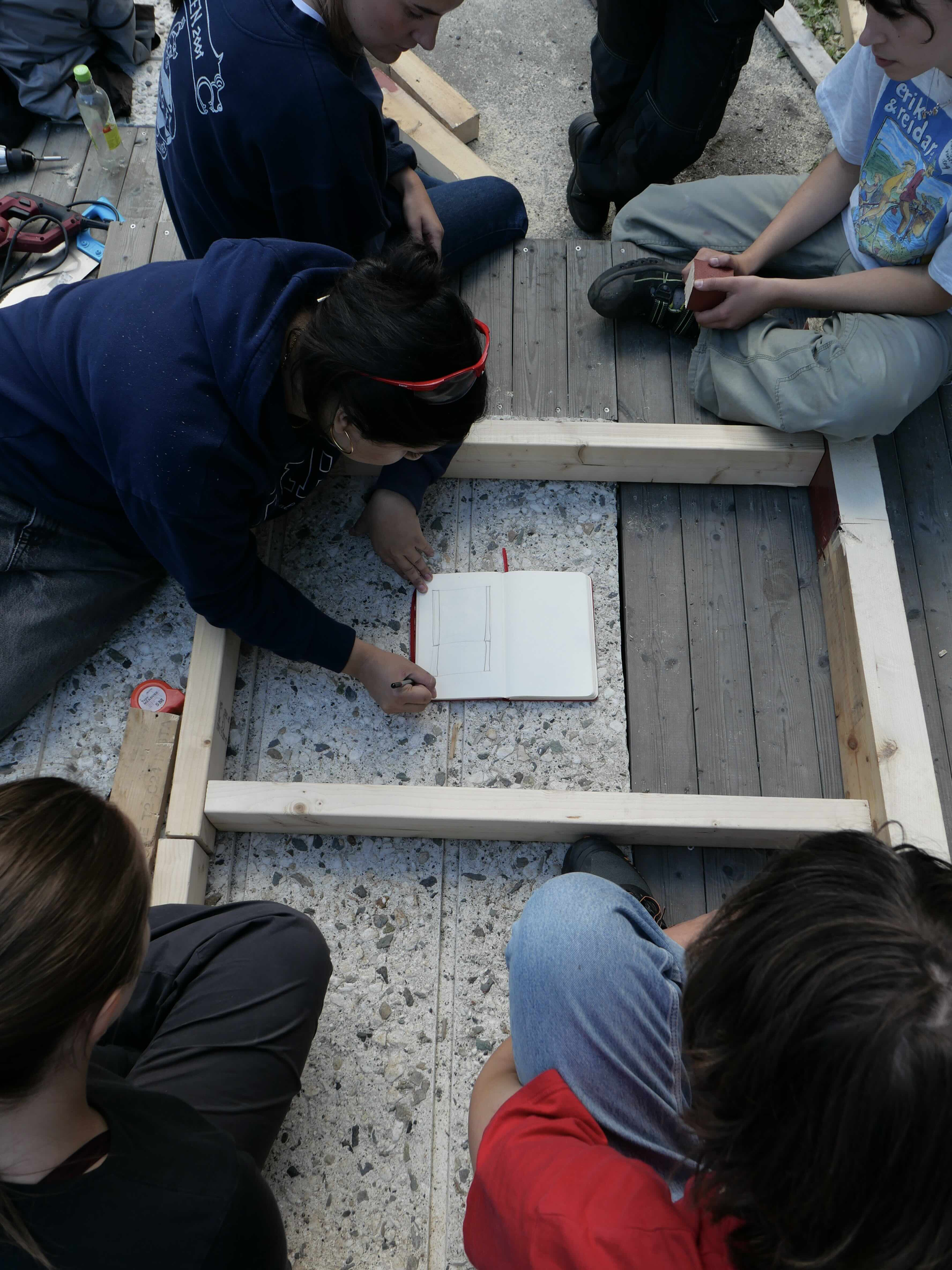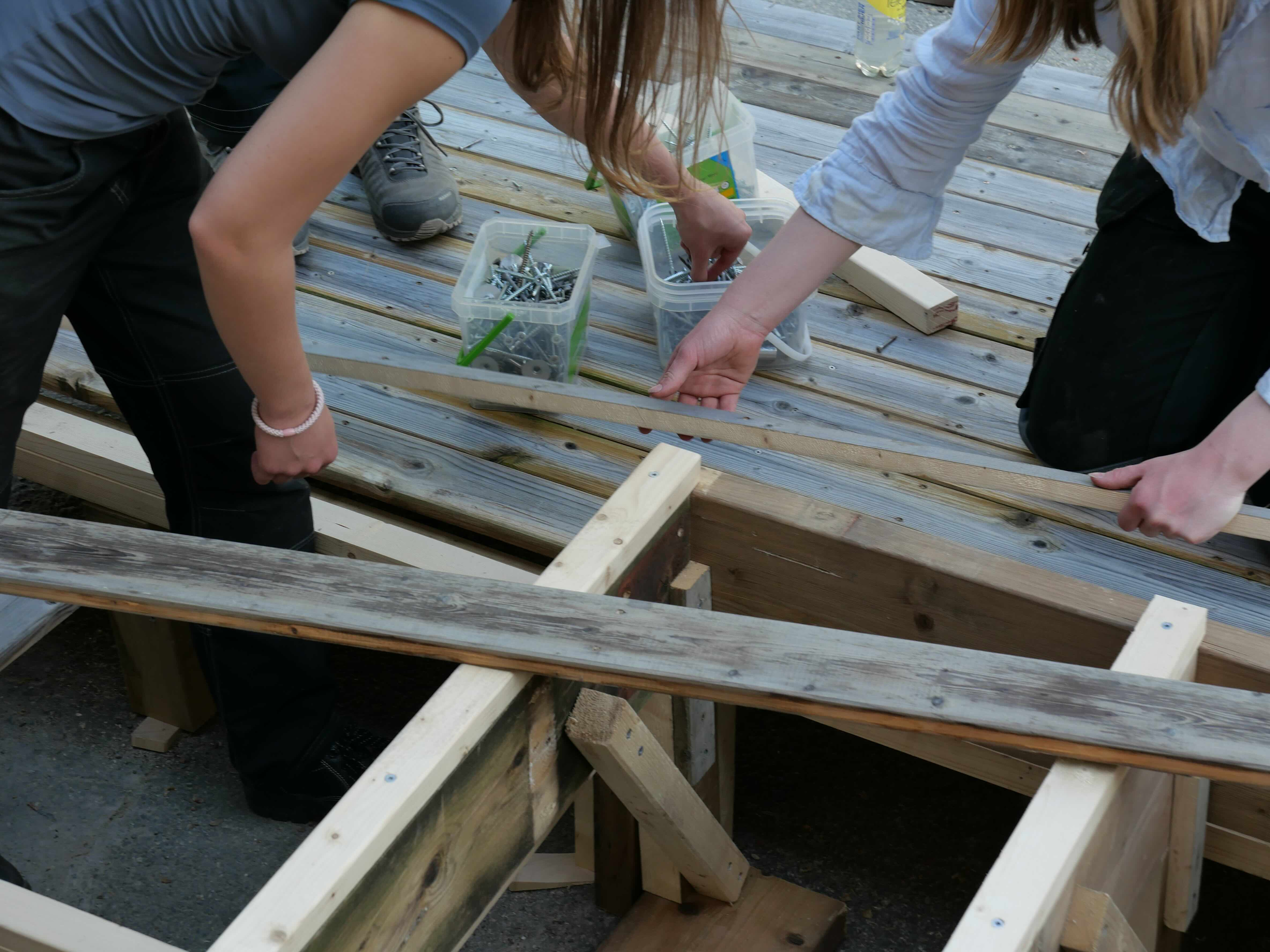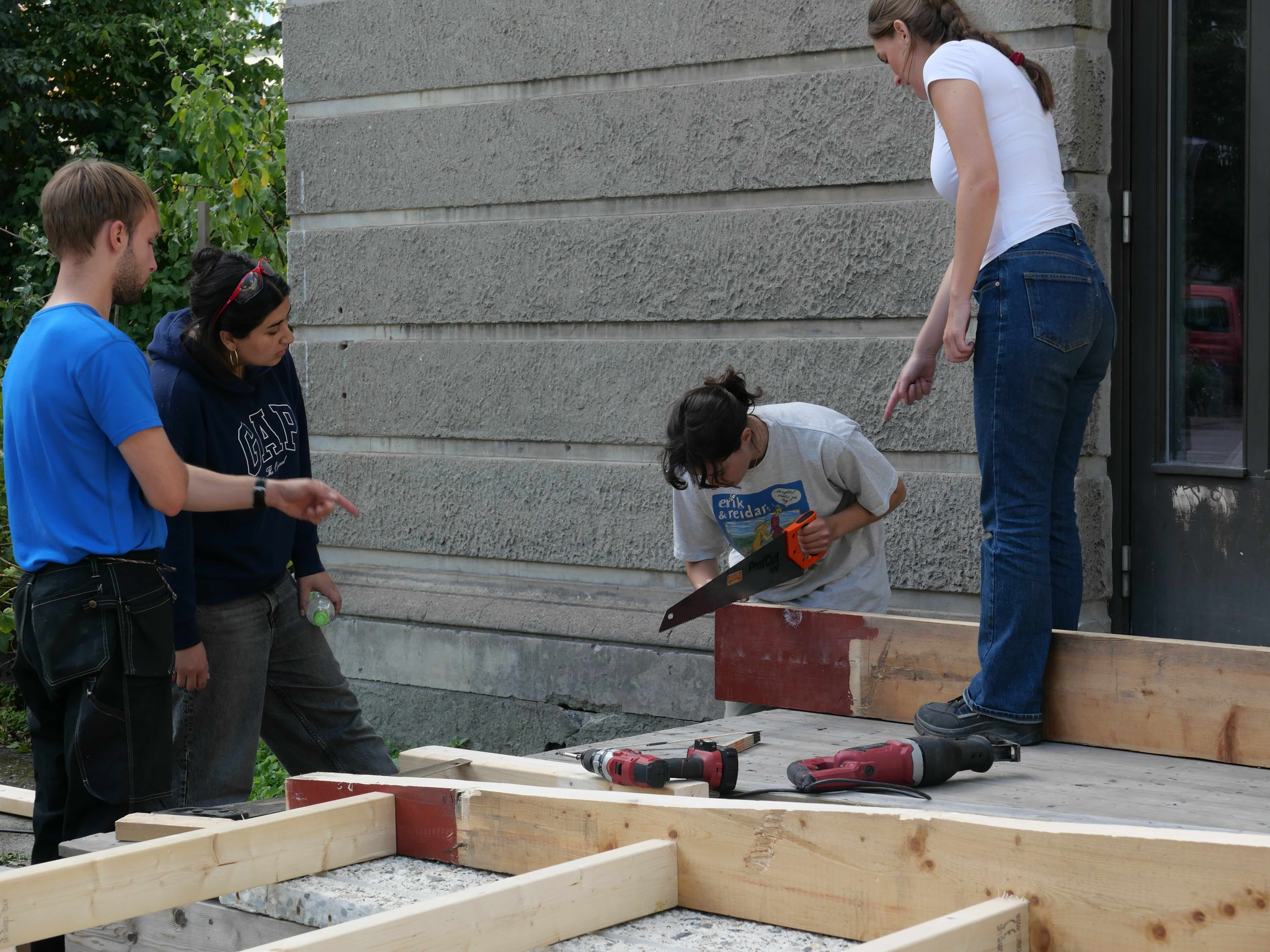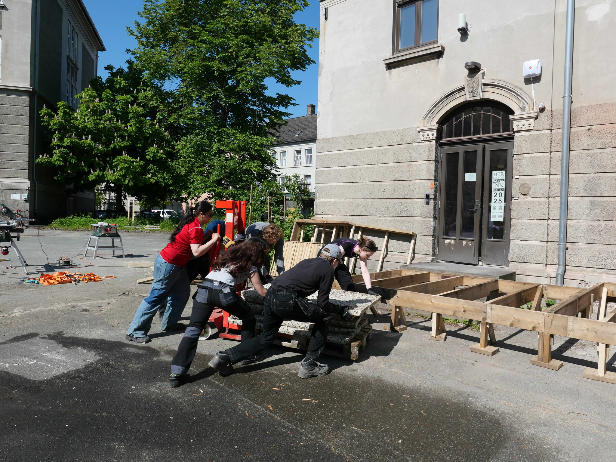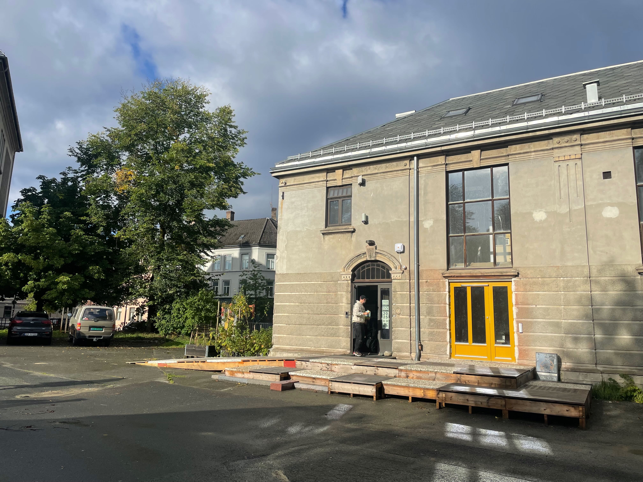 StudioBeta have designed and built the new entrance to Babel visningrom for kunst, an exhibition space run by Lademoen Kunstnerverksteder i Trondheim. The project is based on almost 100% reuse of materials. Most of the wooden structure is reused from another temporary entrance at the art museum in town. The concrete areas are repurposed fasade cladding from a building in Nordre gate, donated by Veidekke and Tverås maskin and the stone steps are leftover material from the local cementary.