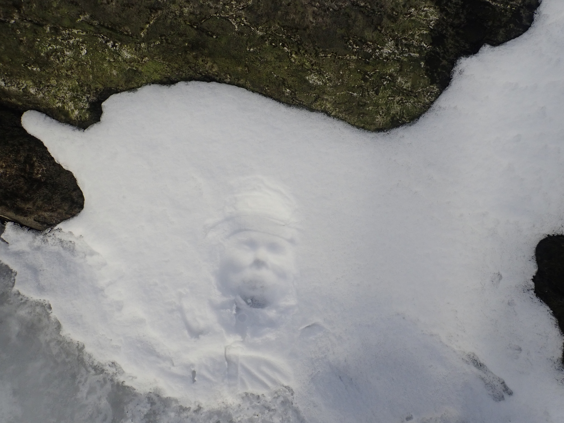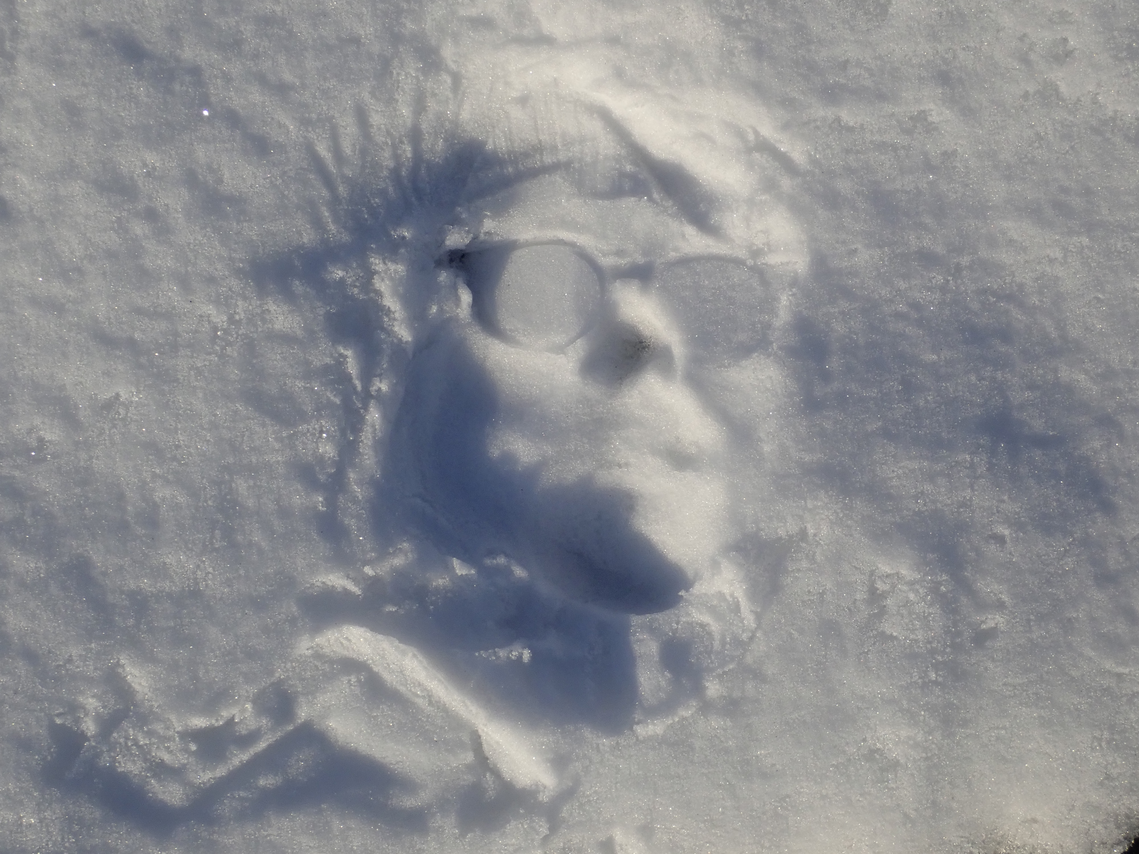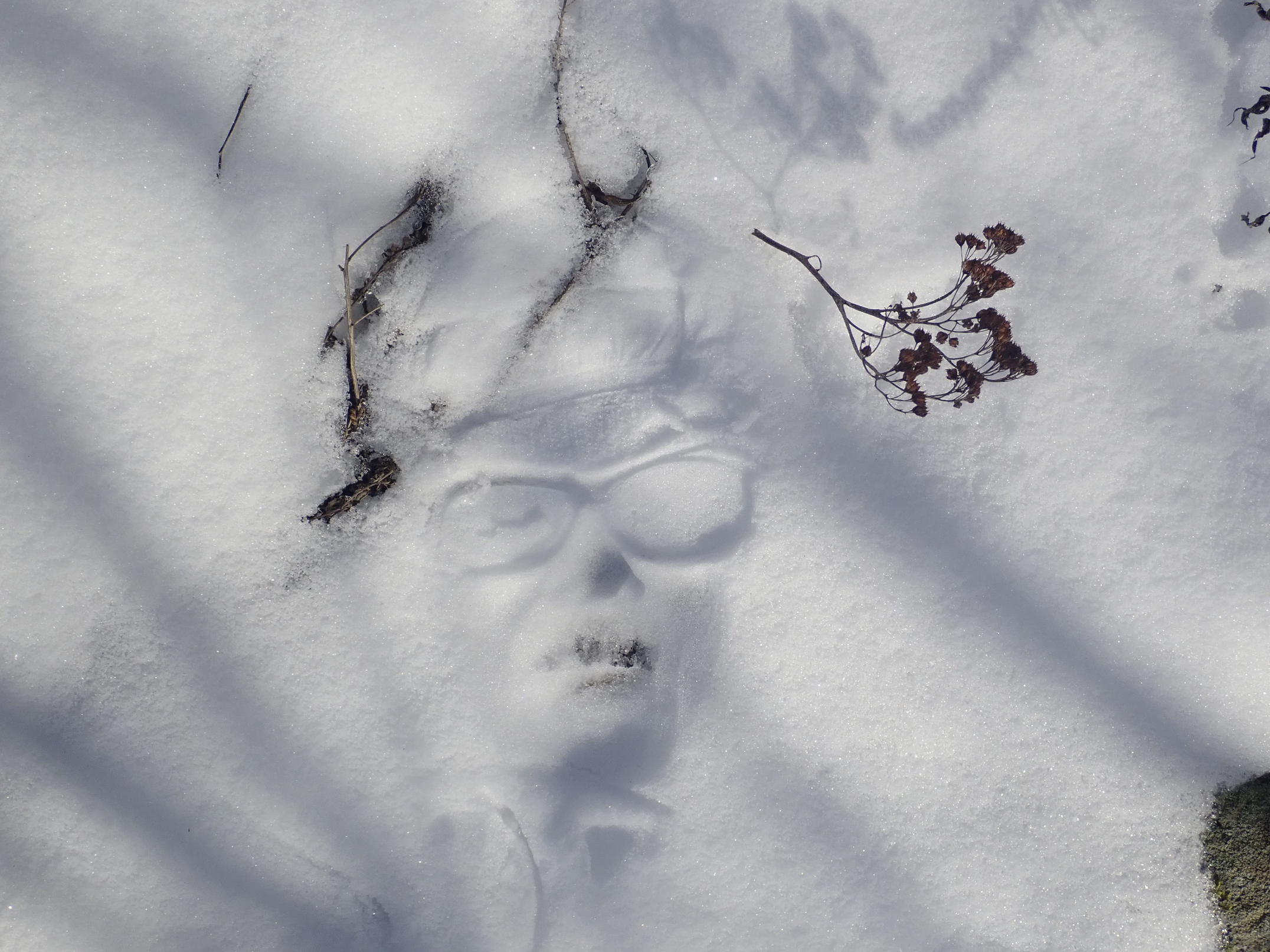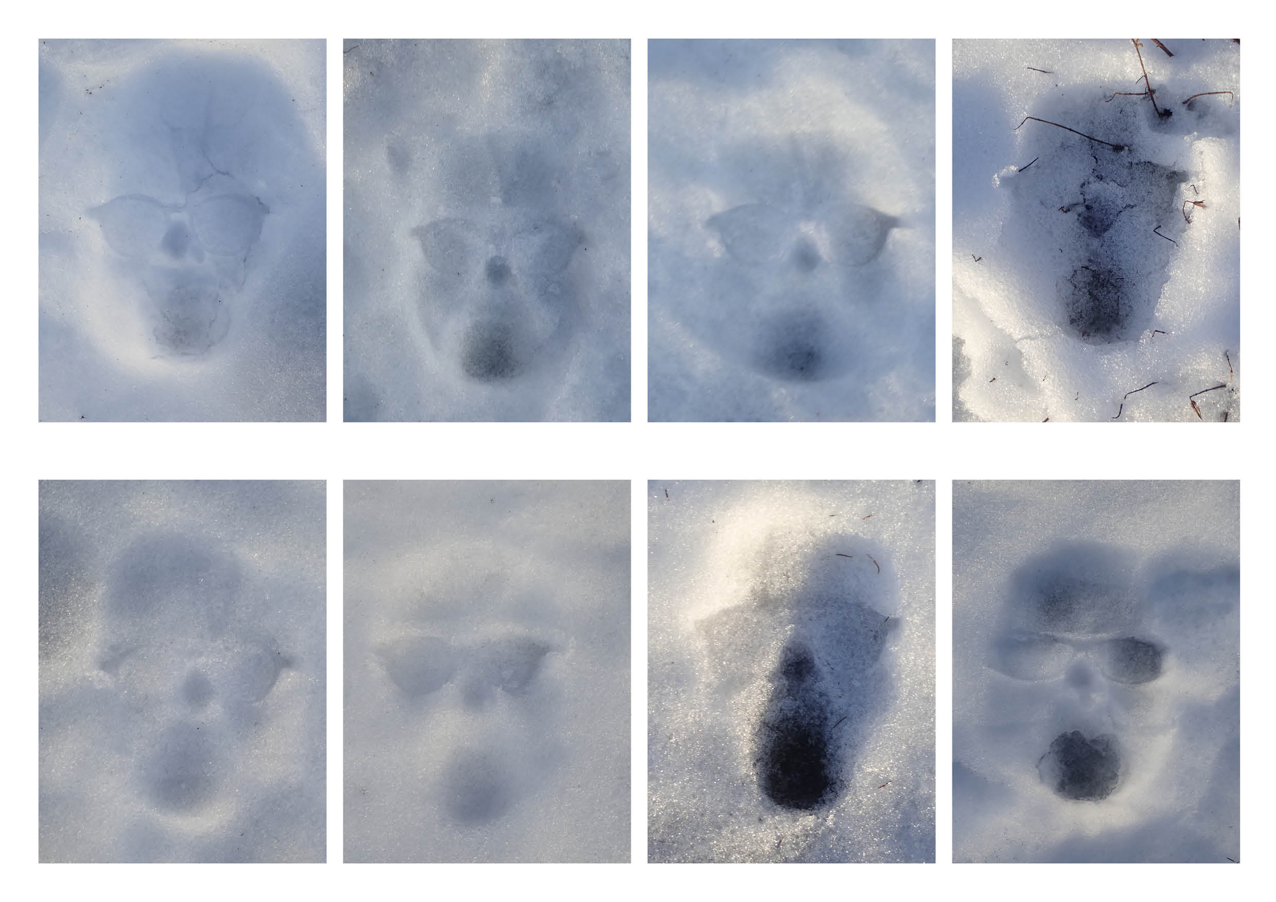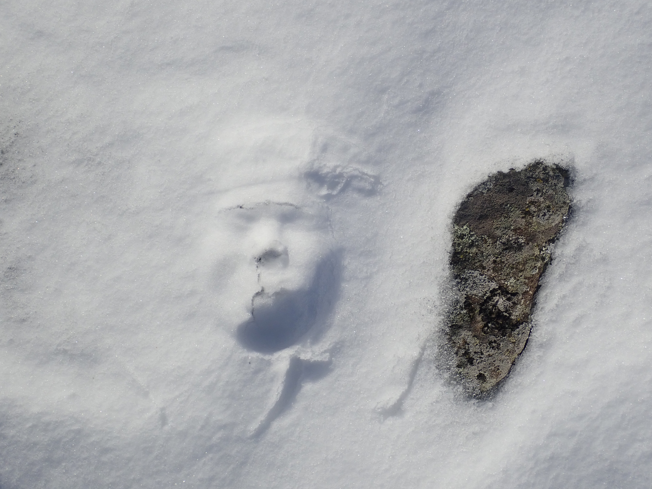 Tuula Närhinen’s recent work-in-progress Self-Portrait in Snow(2025) sets out to explore facial pareidolia, the tendency to see ‘hidden faces’ in the natural world. Snow is harnessed to work as a spiritual medium that provides access to a speculative pictorial heritage. Drawing from 19th century methods of visual empiricism, Närhinen’s playful project revisits anthropometric survey techniques. The work introduces a collection of facial imprints, generated by pressing the visage tightly against snow cover.