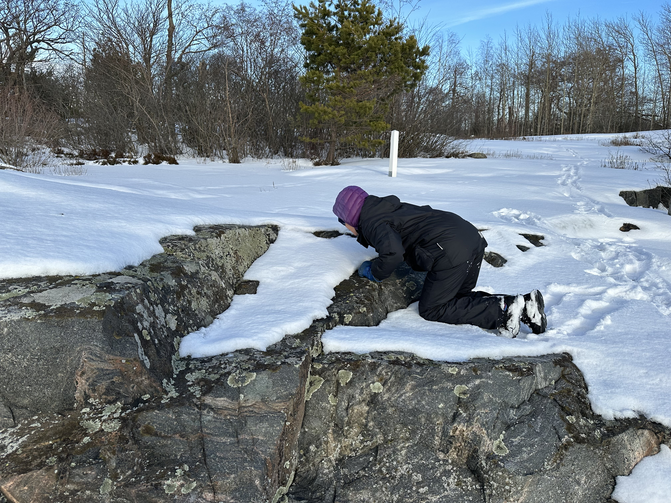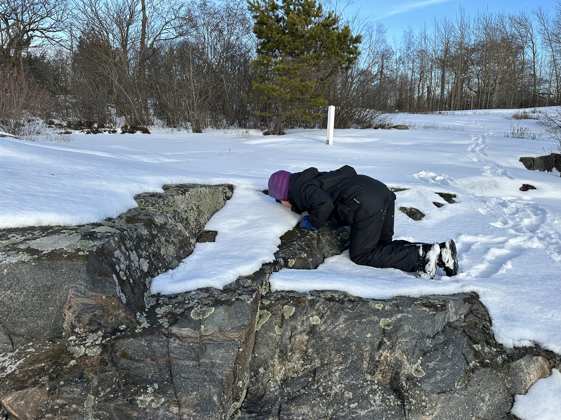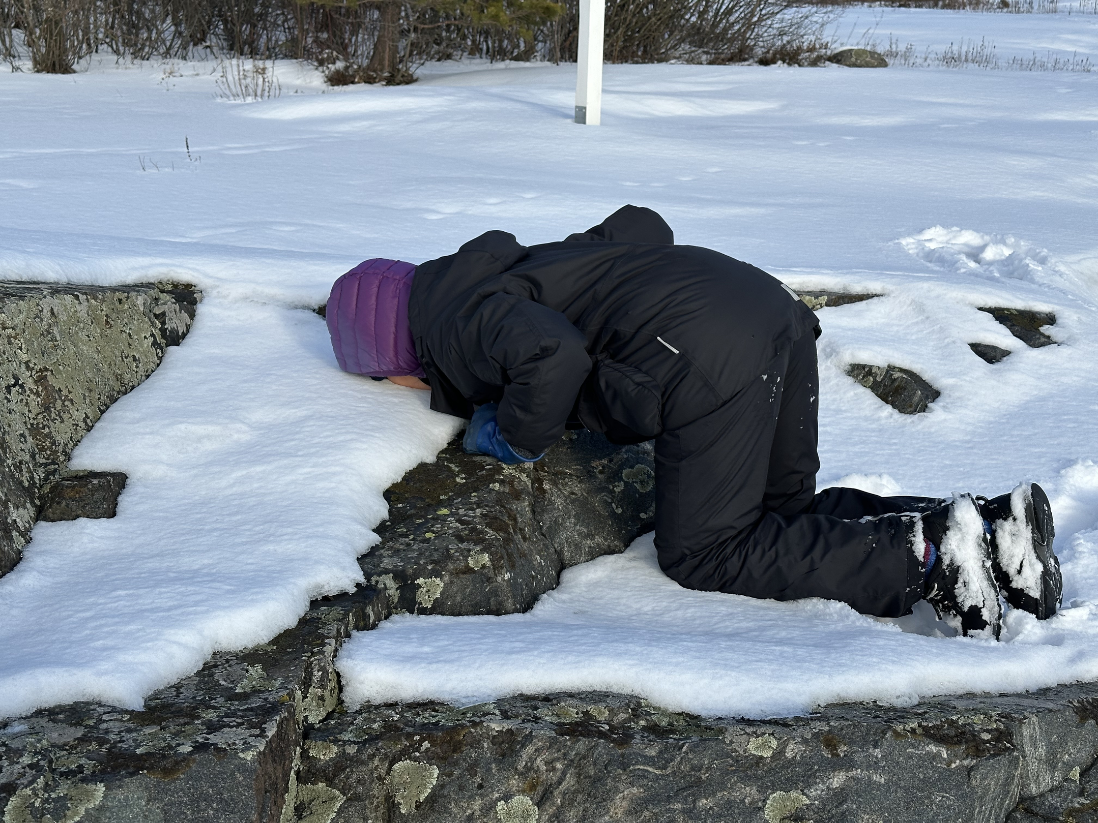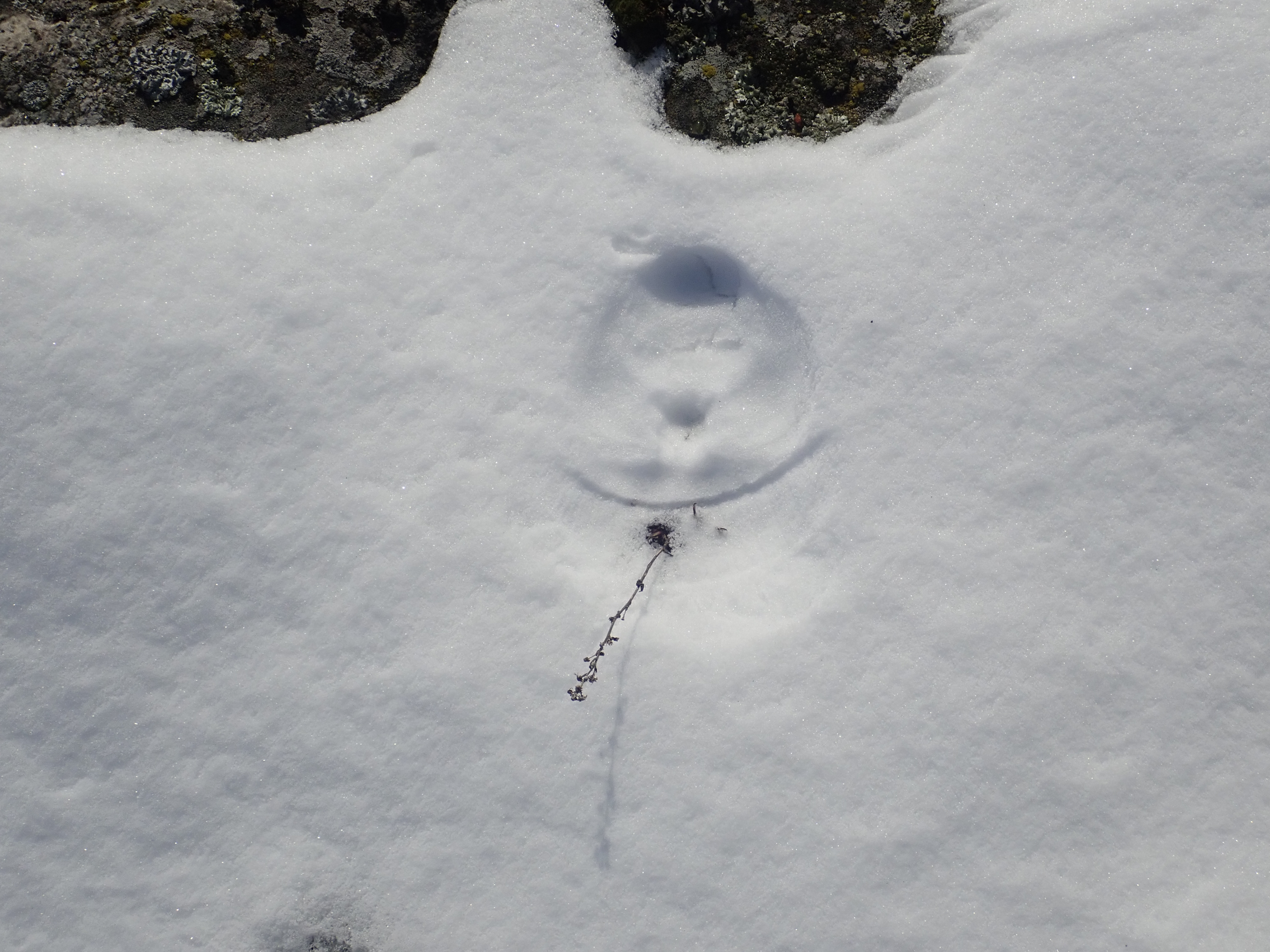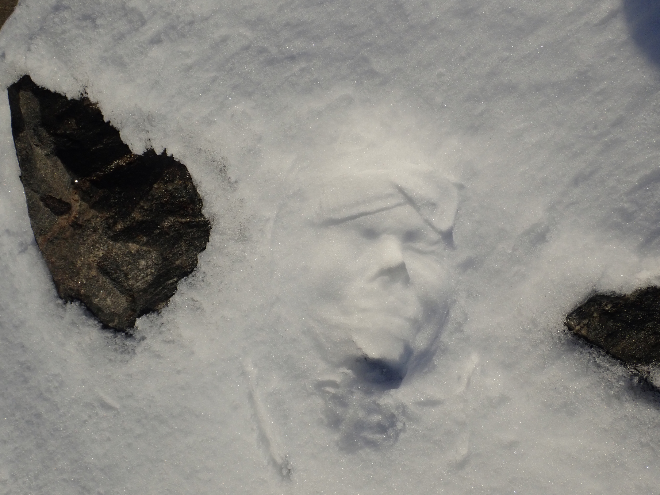 Tuula Närhinen’s recent work-in-progress Self-Portrait in Snow(2025) sets out to explore facial pareidolia, the tendency to see ‘hidden faces’ in the natural world. Snow is harnessed to work as a spiritual medium that provides access to a speculative pictorial heritage. Drawing from 19th century methods of visual empiricism, Närhinen’s playful project revisits anthropometric survey techniques. The work introduces a collection of facial imprints, generated by pressing the visage tightly against snow cover.