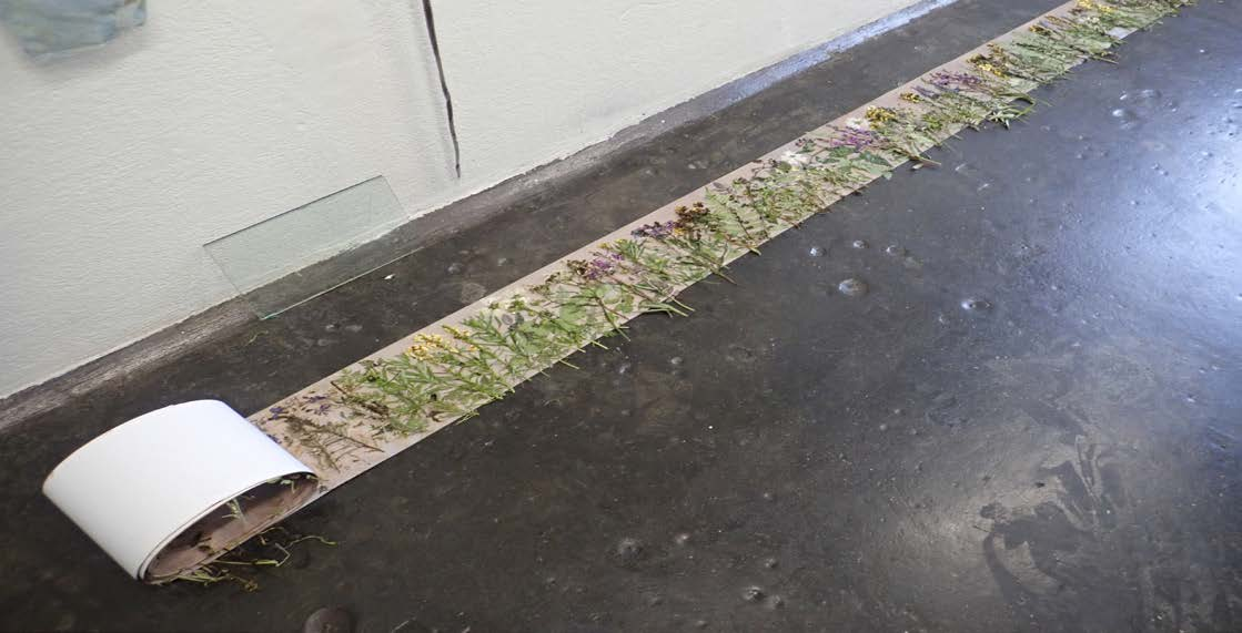 All the artworks are produced by placing objects of the natural world (plants, dead insects or soil) in direct contact with light sensitive surfaces, such as photographic papers, films or cyanotypes. The cameraless method implicated is informed by the artist-researcher Karel Doing’s Phytograms, a cinematographic technique and community film practice that makes use of organic chemistry and analogue film stock to create moving images of plants. Embracing Doing’s experimental method Tuula Närhinen has developed the technique to include still images on colour printout paper.