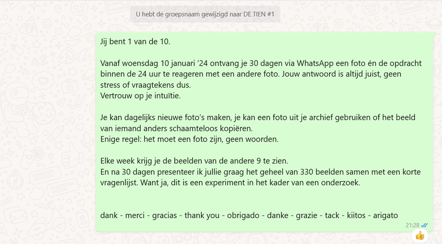 10 mensen antwoorden 30 dagen met een foto op een foto die hen dagelijks wordt doorgestuurd via WhatsApp
