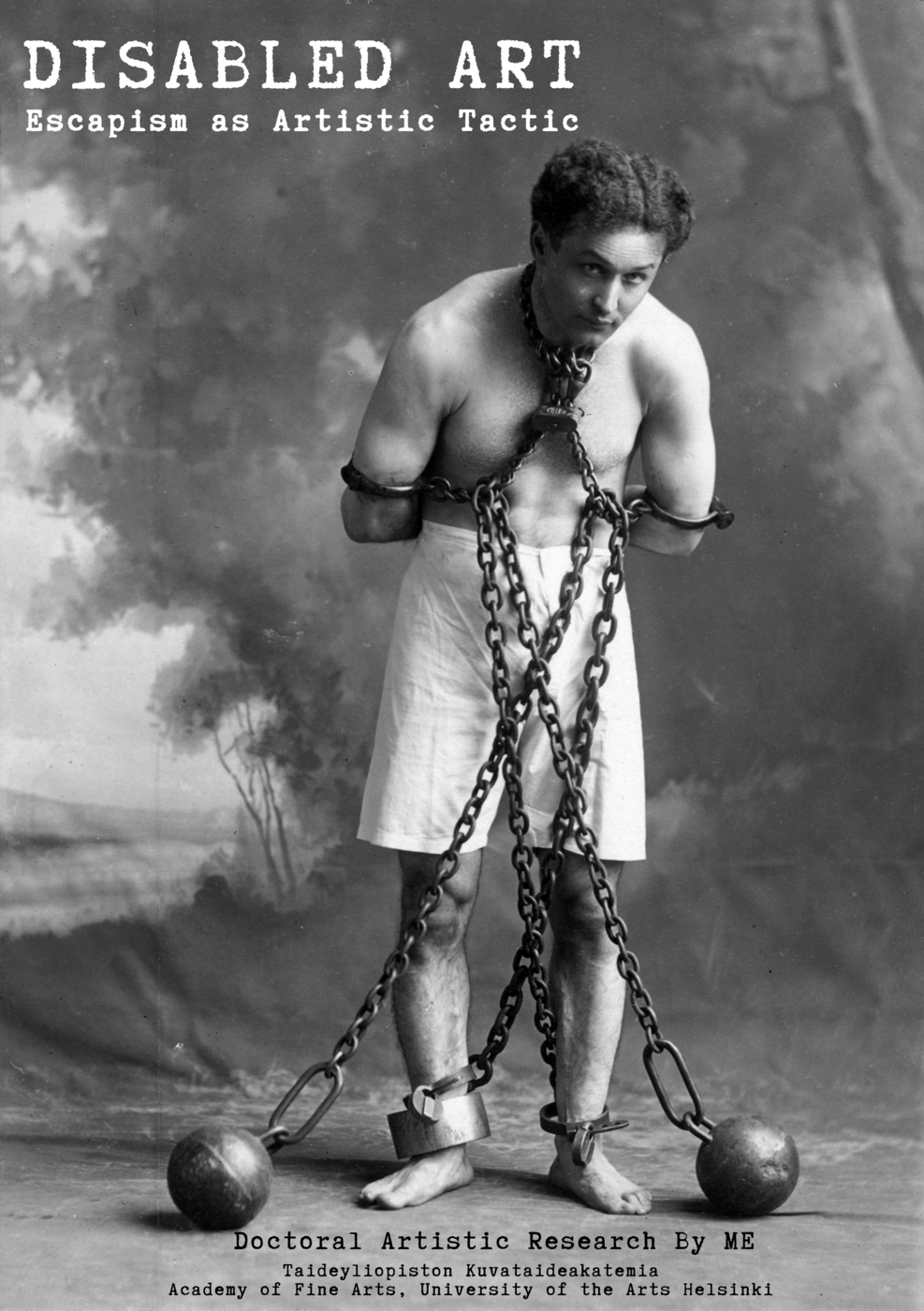 Abstract Doctoral thesis in fine art, Itay Ziv ” Disabled Art”. Escapism As Artistic Tactic This doctoral thesis in fine arts addresses the notion of “Disabled art” by developing an artistic idea of escapism and its mechanisms and tools. Investigating the nature of artistic escapism the thesis aims at producing a body of knowledge based on my own activity as a visul artist over the last 15 years – a series of steps influenced by escapist patterns of behaviour I have tried to follow. My work concerns the true ability of art to touch upon agonizing topics such as the Holocaust or the Israeli-Palestinian conflict; in more abstract terms, it concerns our instability and sense of belonging in a post-traumatic reality saturated with catastrophic fears. The research focuses on topics that emerge from my artistic practice: authenticity, performativity, lack of hierarchy, anti-heroism, apathy, repetition and vulgarity. In light of these topics I deal with questions such as: What happens when art is not prepared or able to take an active stance with regard to political and social contents? What is the role of an artist when art fails in its efforts to actively engage in our reality and to reflect on it? How does art look like when the artist is simply tired? What is the role of this “disabled” art-making in today's society? In order to outline the notion of “Disabled Art”, I transform its components into various modes of escapist artistic behaviour. The art of escaping has long been practiced by performers who took bonds and cages as a challenge. Sometimes breaking away from the shackles is a way to catharsis, sometimes it is a mere survival mode. Originally the art of escaping did not feature an overt act in itself but involved instead secretly created illusions, such as a disappearance act or a transmutation. The operation of escaping includes always the danger of failure. Escape artists create an act in which they escape from difficult situations that seemingly threaten their freedom and lives. Using magic tricks and illusions, they manage to break free from the obstacles and traps in which they are imprisoned. Even if escape artists manage to leave their audience amazed and confused, their art builds on the ability to create illusions. This research builds on a correspondence between two figures: The Escapist Artist (ME) and his research. ME writes letters. Like in my previous art works the ME character is an imaginary and speculative character who’s seeking for communication. In this research the ME is corresponding with another fictitious character – his research. Their combination, Mechanism of Escapism, a basic artistic approach for creating reflection and responses, is explored in this research as an ideological, political and social default position. The Escapist Artist is a metaphorical and fictional character presented in the thesis as a ghost or a shadow symbolizing cases in which one is unable to find one's true place in the world, a place one can call HOME. An Escapist Artist is constantly on the run in the search for his own identity and roots. He keeps on seeking the place where he belongs to, but at the same time, he keeps escaping from it. This escapistic movement indicates the ways in which an artist and art relate to, and are affected by, today's historical, political and social issues. The research investigates inability in the arts through artistic acts of erasure, disappearance, denial, reluctance, disintegration, absentmindedness, and more. It analyses the artistic escapist approach as a method of expression – an artistic starting point that allows creation out of weakness, avoidance and basic survival instinct. The analysis involves constructing the identity and role of the artist in relation to the function of art today. The narrative in the written part of the thesis consists of three thematic strands: 1. The transformation process in which one becomes an escapist artist. 2. The way of learning how to cope with this situation. 3. The attempts to reach conclusions evoked by this situation.