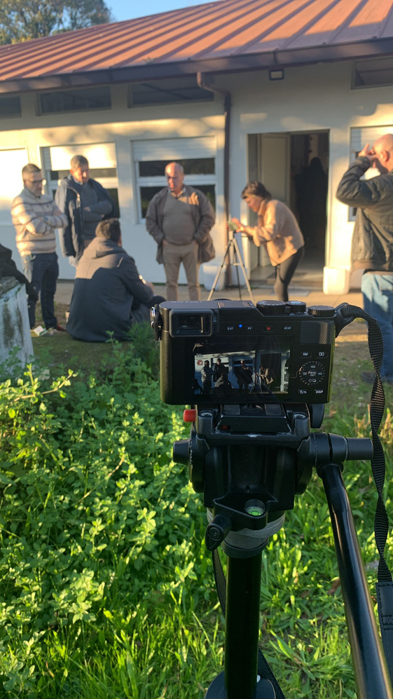 O objetivo desde o início de projeto fora de realizar um video que pudesse passar uma mensagem aos ouvintes sobre o mundo dos surdos, dos gestos e da dificuldade na comunicação entre os dois grupos. Com o auxilio de dois colegas que me ajudaram nas filmagens e nas partes técnicas de captação de imagem, a Ana Paula Figueiredo e o Paulo Santos , inicialmente percebemos que o espaço exterior, o jardim da associação seria um local perfeito para os planos principais. Um grupo de aproximadamente 30 pessoas, algumas totalmente surdas, outras parcialmente, moviam as suas mãos e proferiam sons simplificados, porque quando nos deparamos com conversas entre pessoas surdas, o som existe, saindo das suas bocas e das suas mãos sons tais como o estalar dos dedos, bater com as mãos no seu corpo, o próprio movimento dos corpos a se expressarem reproduzem som. Eu já tinha experienciado momentos como esse, mas para os meus colegas talvez tenha sido a primeira vez. O que aconteceu fora realmente um trabalho simples, bastante amador e humilde, com algum sentimento de invasão do espaço que era deles e que é lhes é sensível, e que fora um pouco invadido por “3 jovens artistas”, como eles nos chamavam, o que senti com essas denominações sensações amistosas que me sossegavam. Quando chegamos expus o projeto a todos em LGP e pedi que caso eles se sentissem à vontade em frente das câmaras, pudessem se expressar, contar um história, contar uma curiosidade sobre algo do passado, sobre eles ou sobre as suas vivencias. Identificando e dando “voz” àqueles que não são ouvidos. Numa fase inicial, procurei por captar apenas os gestos, o movimento das mão em conversas paralelas ou em grupos, tentando-me apartar desses enquadramentos. Uma das dificuldades fora criar algumas situações que pudessem construir uma narrativa visual artística e cenários que pudessem ser sugestivos da mensagem que quisera explorar, mas ao mesmo tempo não me apropriando demasiado do espaço que lhes pertence, não causando qualquer desconforto maior do que a nossa presença e não manipulando as suas ações. Como resultado, alguns prontamente quiseram ajudar fazendo parte do projeto e em sintonia com a proposta lançada, gravaram os seus rostos em plano principal, falando abertamente para a câmara. Um dos grandes momentos das gravações, fora quando propus a um dos participantes que entrasse numa espécie de abrigo ripado a madeiras, e que permanecesse dentro dele, gestualizando com as mão expostas, e a câmara permanecendo de fora do espaço. Penso que a sensação que procurei e que o próprio espaço sugeriu, fora uma sensação visual de prisão, de tentativas de comunicação vãs, servindo talvez como metáfora para o tema do projeto. Uma forma poética e dramática, talvez até mesmo bastante agressiva visualmente, mas necessária para a transmissão de uma realidade distante daquele que ouve. No final do dia, analisou-se aquilo que fora gravado e todos os planos que foram capturados, todos os movimentos, todas as luzes, todo o grupos a se comunicar em circulo, e penso que a ideia do circulo é bastante importante e talvez gostaria de poder trabalhá-la mais tarde, na medida em que para que todos se possam entender, a forma de circulo é fundamental, abrindo o campo de visão e podendo “falar um de cada vez”. Fora uma experiência fantástica, e talvez a primeira de muitas com esta associação de surdos, e para mim, deveras importantíssima para poder falar sobre este tema.