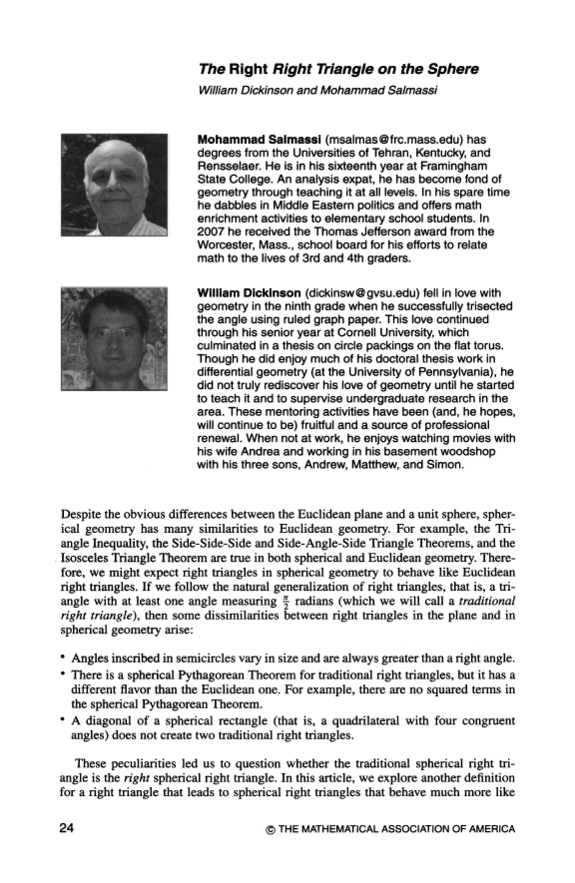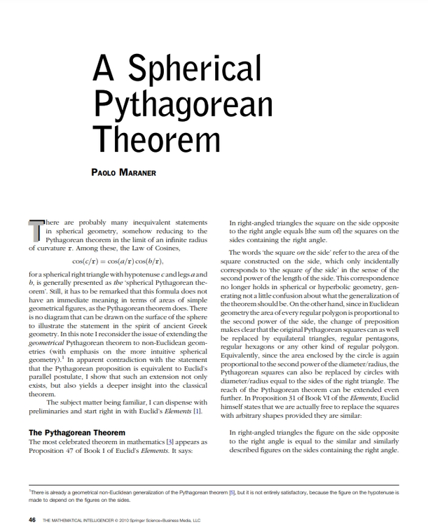 MARANER, P. (2010), A Spherical Pythagorean Theorem, in "THE MATHEMATICAL INTELLIGENCER", Springer Science+Business Media, p. 46