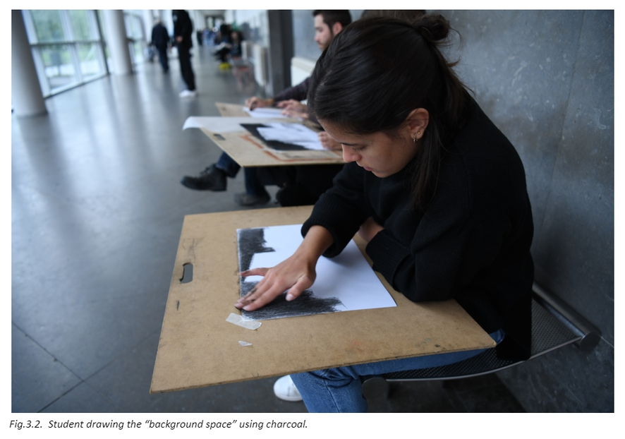 Fig.3.2. Student drawing the “background space” using charcoal.