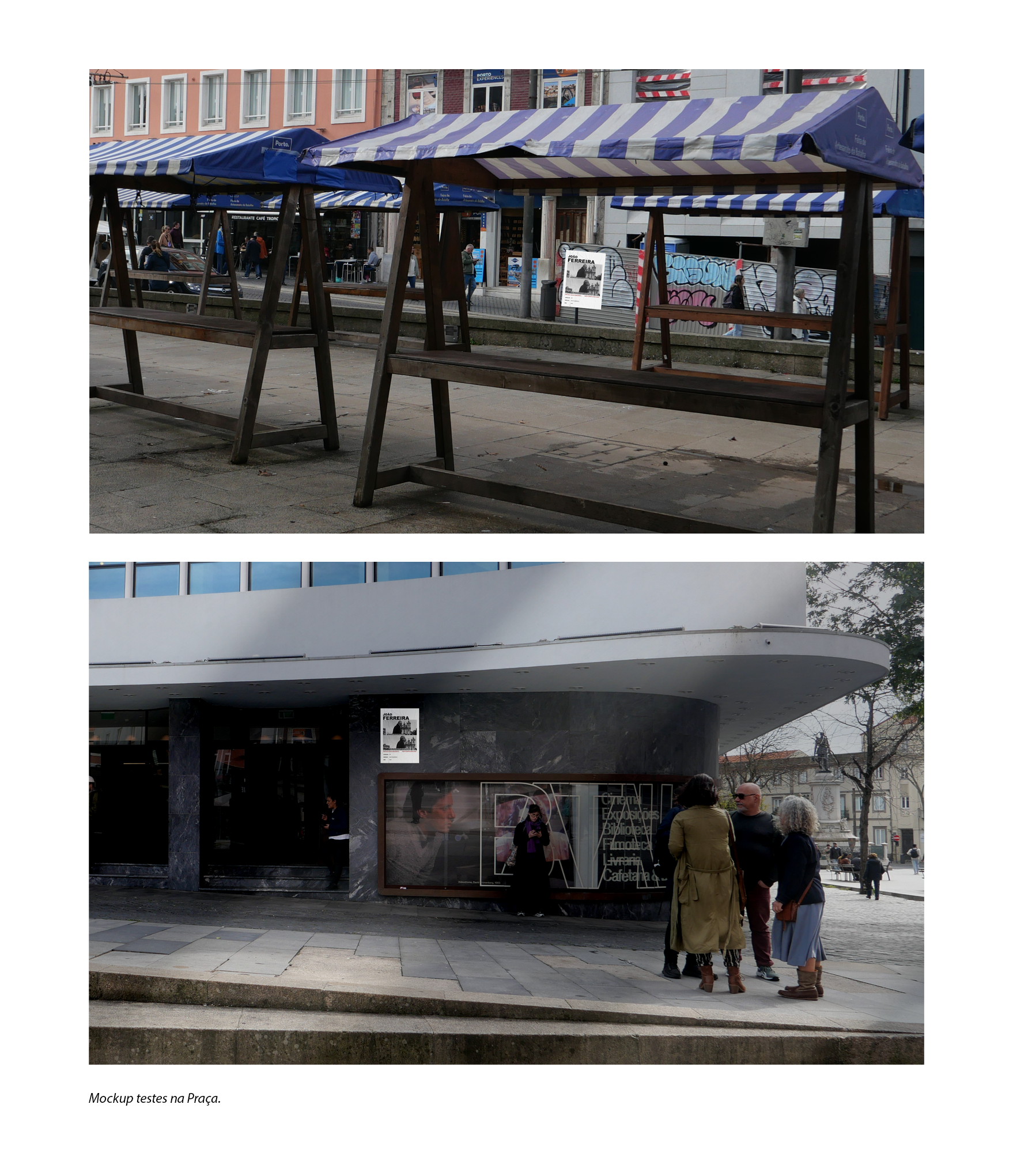 With the objective of documenting and intervening, in essence: using photographs of people in the square to create posters with the old visual identity of Cinema Batalha and placing them in the square itself, practicing an intervention and artistically influencing the place to highlight the unnoticed stories.