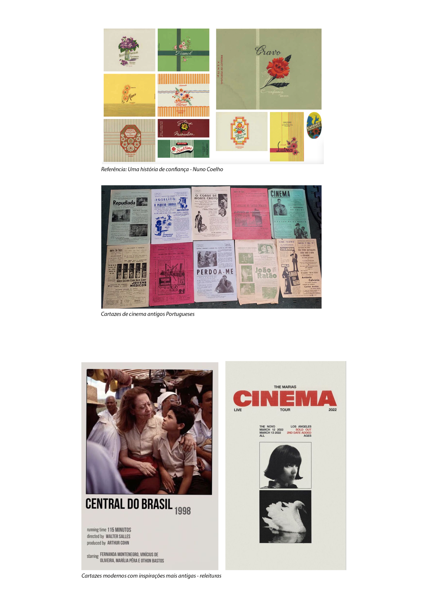 During this research, I recalled Nuno Coelho's project, the book "Confiança," in which the designer reimagined labels and packaging for a soap factory. This approach of resurrecting historical visual elements served as inspiration to consider the aesthetics of the old Cinema Batalha's posters and other visual elements in the project.