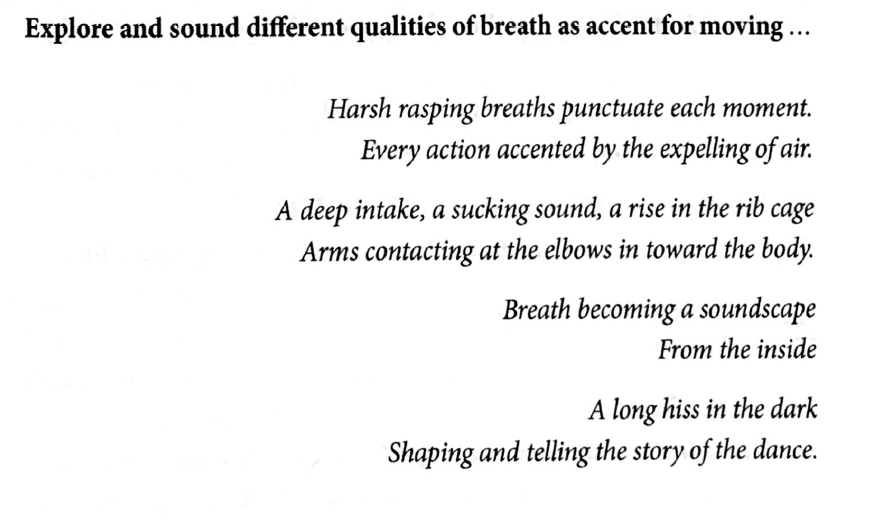 For the past few years, I have been intrigued by the idea of combining voice and movement in my practice and creative projects. I was finding quite challenging to find enough resources, especially videos from such works. I started discovering practitioners that involve both elements in their process and reading about them but still it is hard to find works that I can watch using both. One of the most interesting practitioners I encountered was Orly Portal who is also a Voice and Movement therapist, but I haven't found any accesible video material using this combination out of her works. Another one is Aoife McAtamney, who is working with vocal movement and giving workshops based on this idea but again I am facing a lack of resources or published works where the combination of these two elements is represented. Then the two well known practitioners Meredith Monk and Roy Hart have also been a source of inspiration for my future aspirations. Another two practitioners that I encountered during my research were Liz Kinoshita and Paolo Cingolani who is member of Julyen Hamilton's company ALLEN'S LINE working with voice and movement as well. As I kept trying to deepen my knowledge, I also found the combination of voice and movement it several traditions' rituals such as African Tribes, and Samoan/Maori using slap dance. I started realizing that body percussion, which also has therapeutic benefits, is often the connecting point between voice and movement along with breath that I am currently exploring. From this point, I got to know Sandy Silva who is working with body percussion, voice and movement, and has created the amazing Migration Dance Film Project, Keith Terry who also has formed his own educational method for teaching body music, Stomps that are using body music and movement, Bobby McFerrin who is working with vocal improvisation using sounds/words that don't necessarily make logical sense but are free expression of the moment which made me link this with Fitzmaurice approach to vocalization, and finally Kate Hilder who is working with Feldenkrais and Action Theatre, another very interesting way to combine those elements.