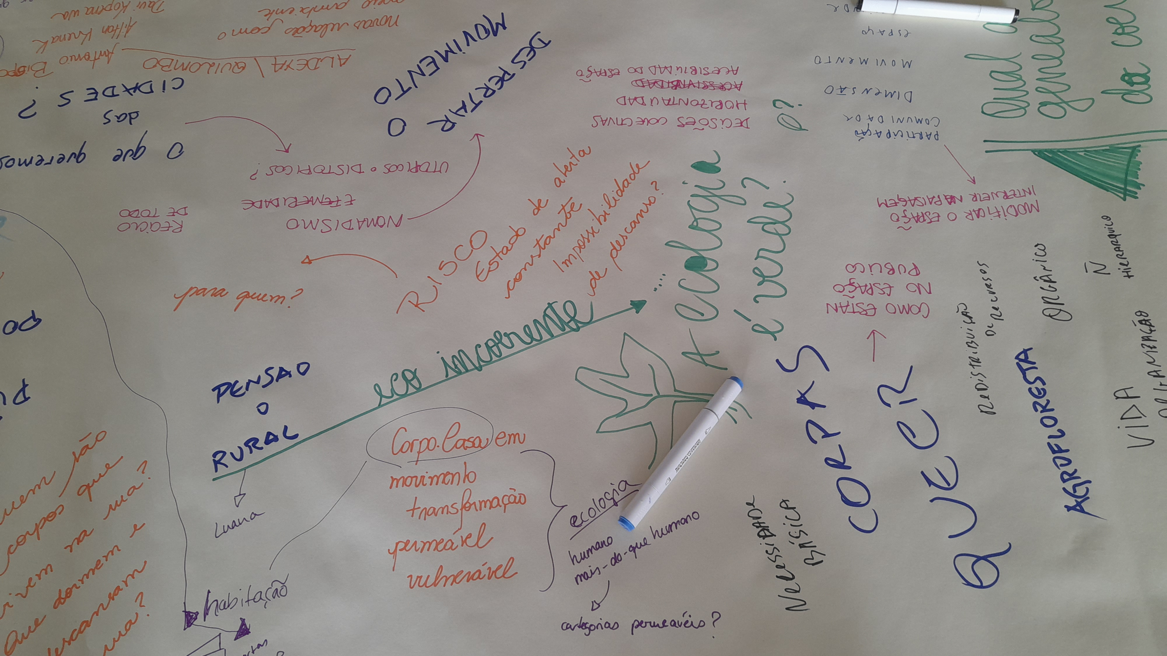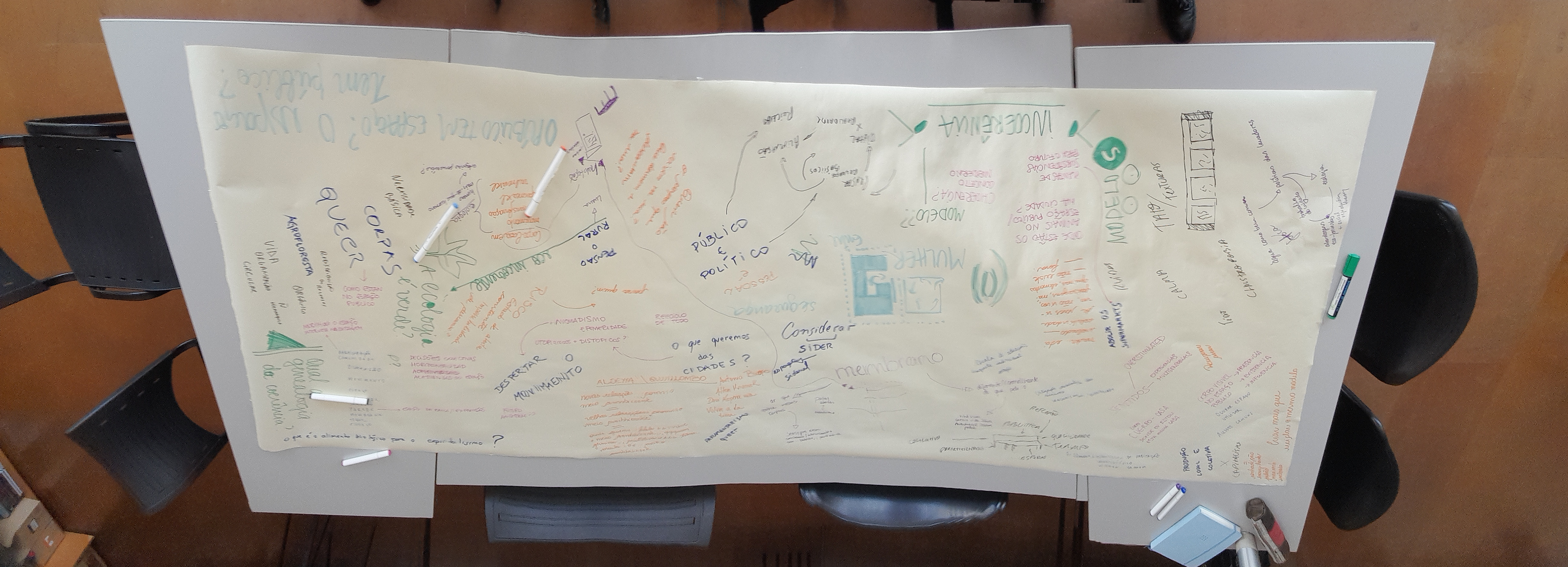 We approached the 4 themes for 3 minutes each, freely writing reflections and ideas on a large shared sheet of paper