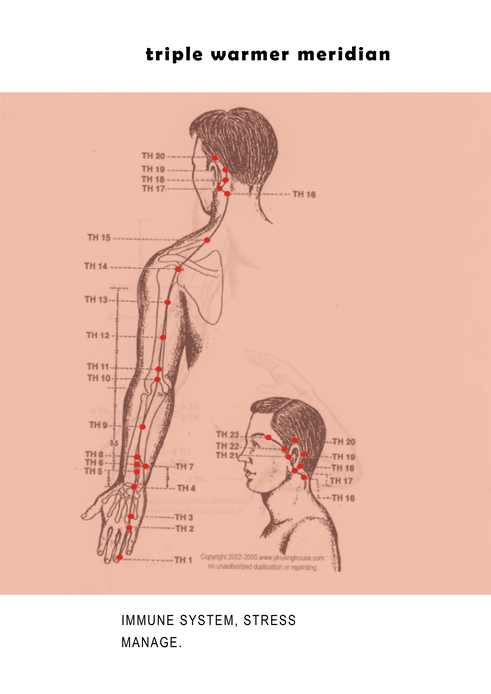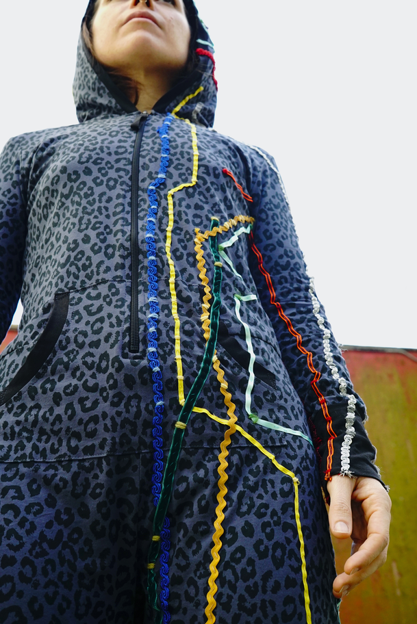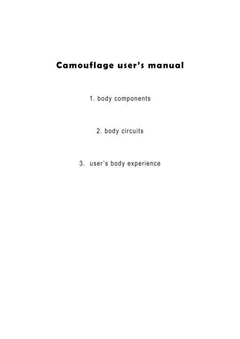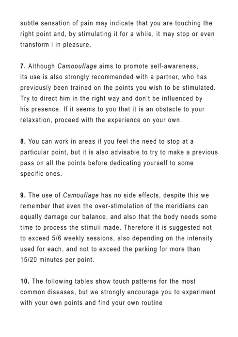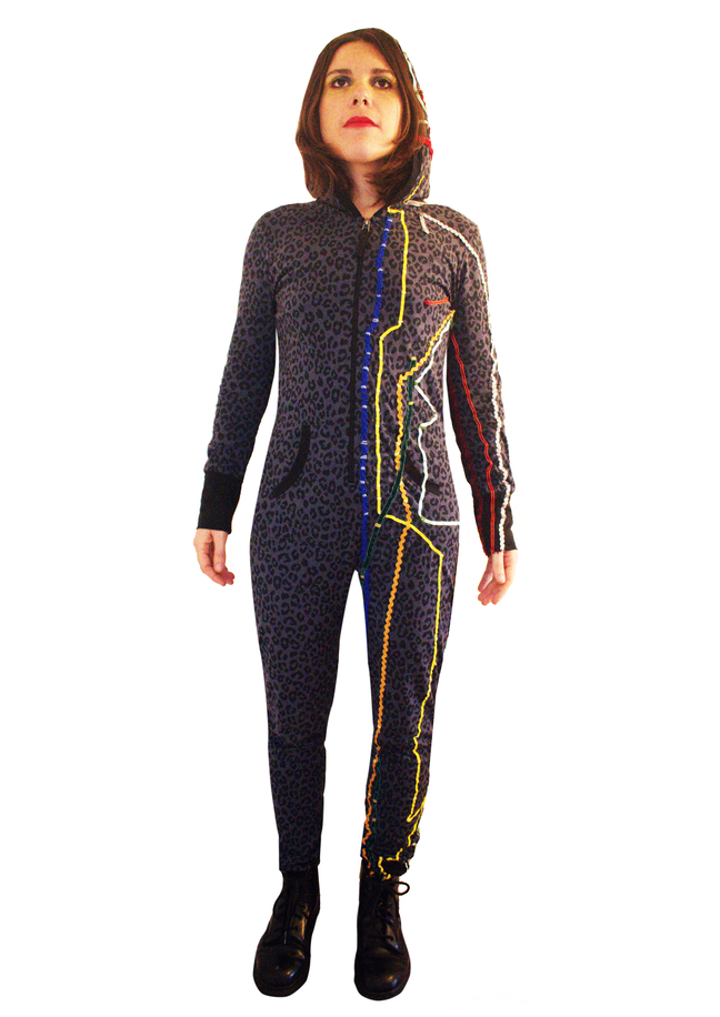 "Camouflage" is a clothing that functions as a healing device for the practice of self-massage. The garment, designed as a second skin to be worn, makes visible the map of the main acupressure points on the body and the energy lines connected to the organs, called Meridians in Chinese medicine.