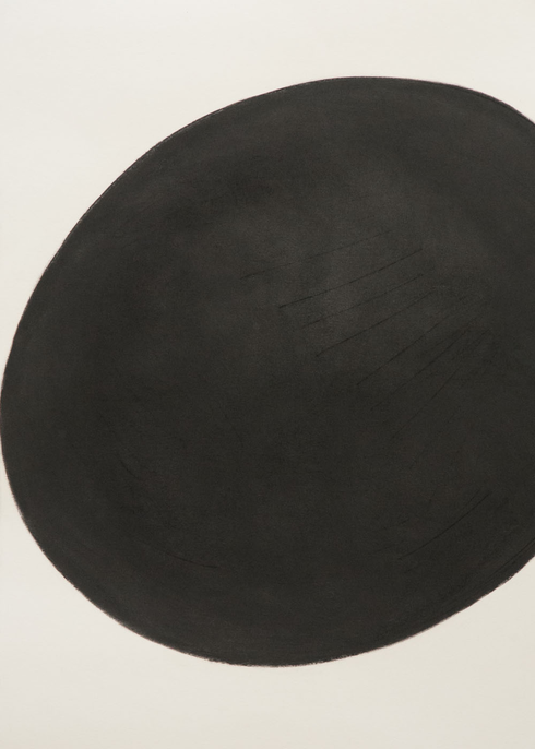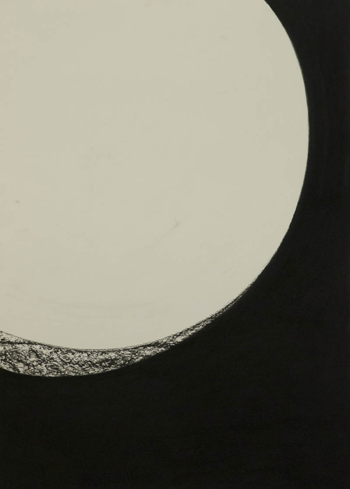 Later I developed the drawings in the opposite direction: a white curved form, left behind after making the rest of the paper as black as it can be. The curved form became the moon in the night sky. Since the drawings were meant to be presented together with a sculpture series on the Danish resistance movement, in particular portraits of assassins, the moon became a symbol for activities which under normal circumstances cannot take place in broad daylight. That is where I start now: a negative form (picture 6).