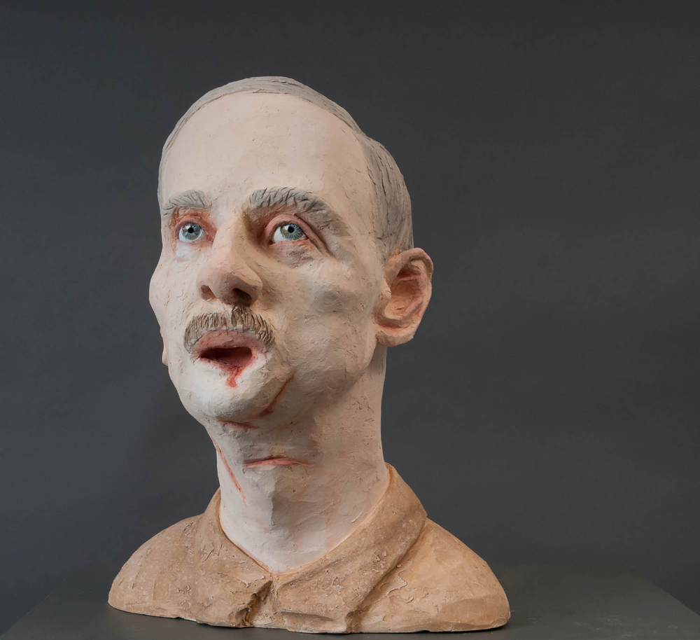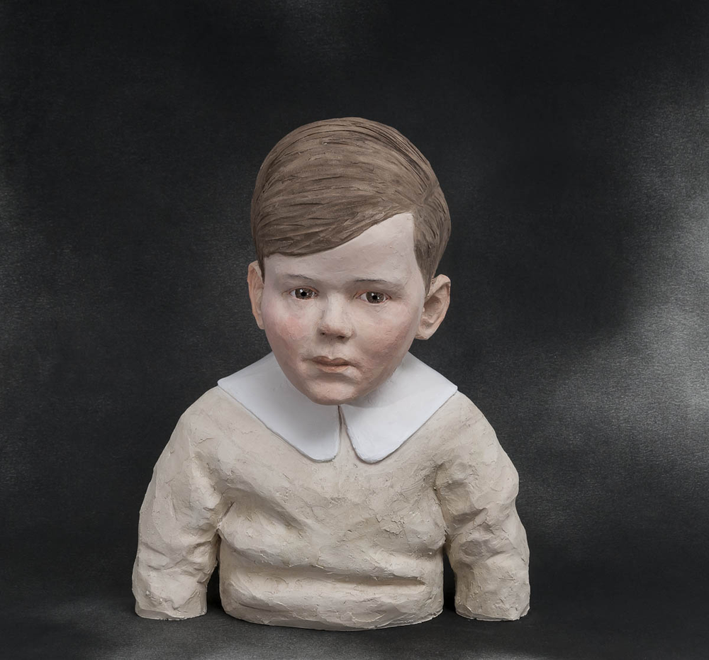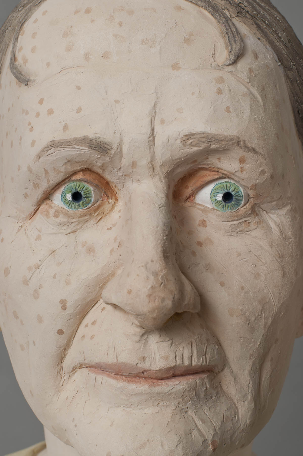 In my sculpture I have one or two pictures that I use as a reference. I try to get as close as I can to the person I depict. Through the years I have developed a descriptive working method, where I measure the head and all its features and their positions and relations to each other. At the same time, while looking at the pictures I have, I try to feel the person I depict on an emotional level and I try to catch that feeling in my sculpture.