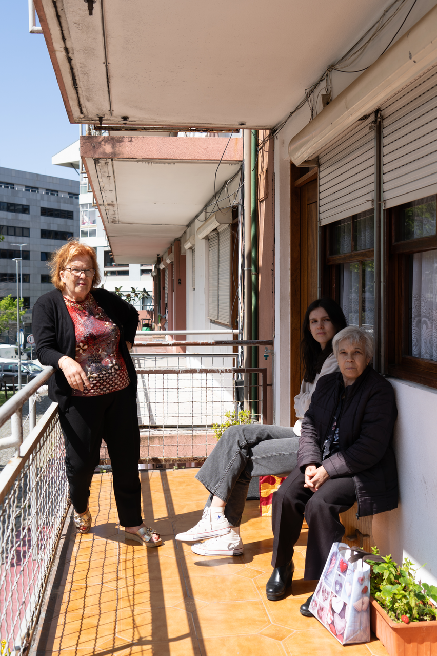 No seu lugar, surge até mais espaço para o Sol, a conversa e a relação. O retrato das suas vidas quase se resume apenas ao interior, mas as obras hão de terminar. Mais uma vez as paredes cor de salmão não serão suficientes para segurar as suas coisas e vontades, e nelas serão reescritas as histórias antigas e escritas novas. Um palimpsesto contínuo, com a esperança de vida dos blocos e os rastros das múltiplas vidas que os habitam.