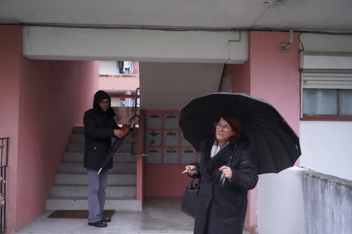 Para conhecer o bairro foi necessário conhecer os habitantes. Não só fotografá-los, mas falar, conhecer, perguntar e ouvir, histórias de agora e de antes, como lá foram parar, se gostam de lá estar, a família que têm e a vida que levam, perguntar se podemos entrar. Subir as escadas e entrar, na galeria, na varanda, na marquise, entrar na sua vida, entrar nos apartamentos. E só aí, ver o que ouvimos.