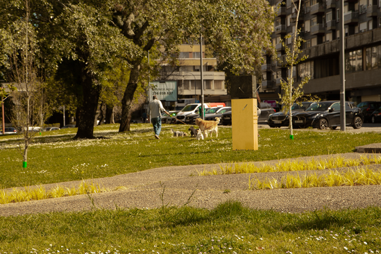 No centro da cidade do Porto, pendurado na Avenida da Boavista e junto à barulhenta VCI, está um lugar onde quase nada acontece, o Foco. No Bairro Habitacional do Foco, neste bairro modernista, o tempo parece estar suspenso. Prédios podem ser construídos à sua volta, plenas mutações citadinas e o bairro ainda manteria a sua estética e ambiente. O bairro é como um corpo refastelado, com a sua cabeça pousada na avenida da Boavista e os pés sobre a VCI, sempre em contradição à movimentação e ruído constate da cidade envolvente. Os vizinhos encontram-se na entrada dos blocos, a senhora do 1.º esquerdo limpa a varanda, o porteiro vigia, solitário, o majestoso átrio. Entretanto, na urbe surgem, diariamente, novos movimentos, os metros descarregam milhares de pessoas, os citadinos saem à rua desenfreados na motivação de vivenciar um novo dia. Neste estudo da cidade e a sua relação com o bairro residencial colocamos em foco os seus cidadãos e como os diferentes espaços são vivenciados, refletindo os seus movimentos.