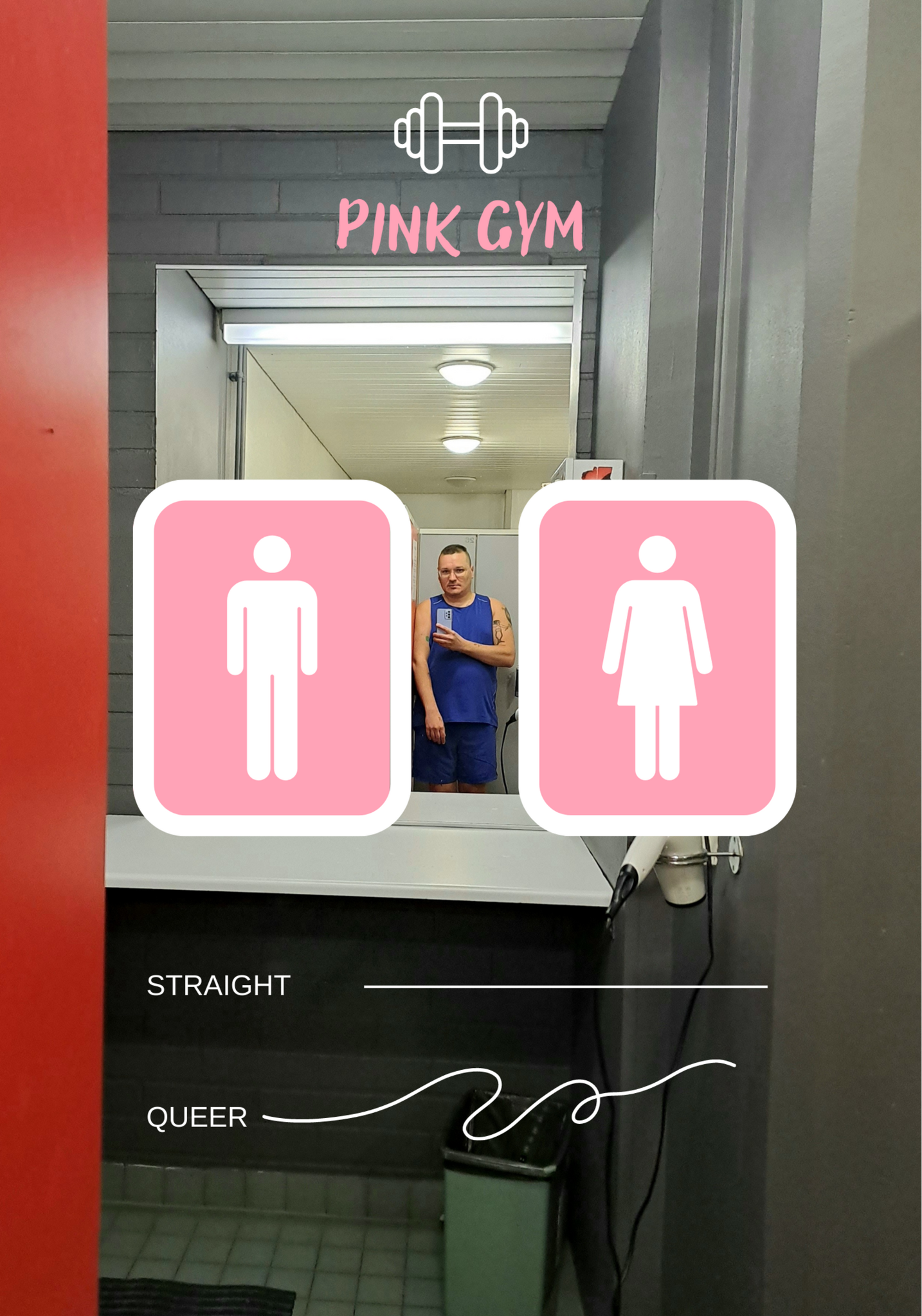 The Pink Gym exhibition project began during meetings of me and my personal trainer at the gym in 2023. Themes of the exhibition began to expand as I interpreted my experiences at the gym and discussed them with other queer people.