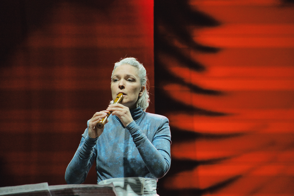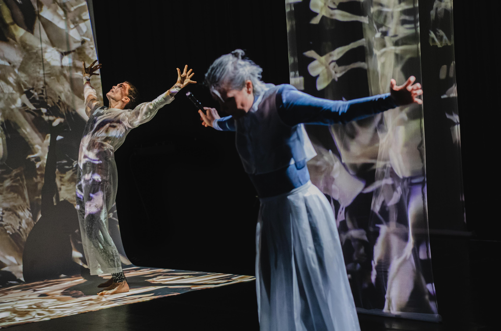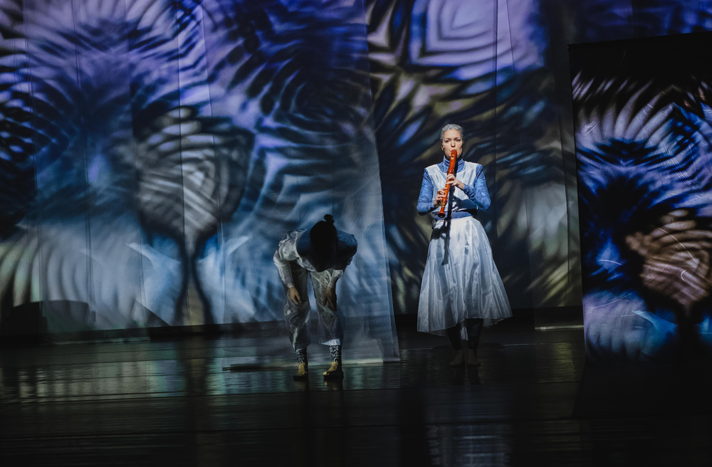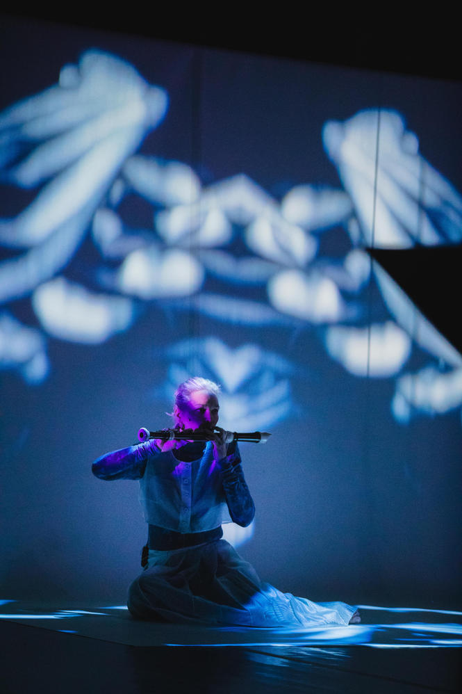 The Conference of the Birds (2022) is a staged performance inspired by the Persian poet Farid-ud-Din Attar's epic poem Manteq ot-teyr. It is based on a close collaboration between the participating artists and includes music, dance, video projections, electroacoustic music, light and costume.
