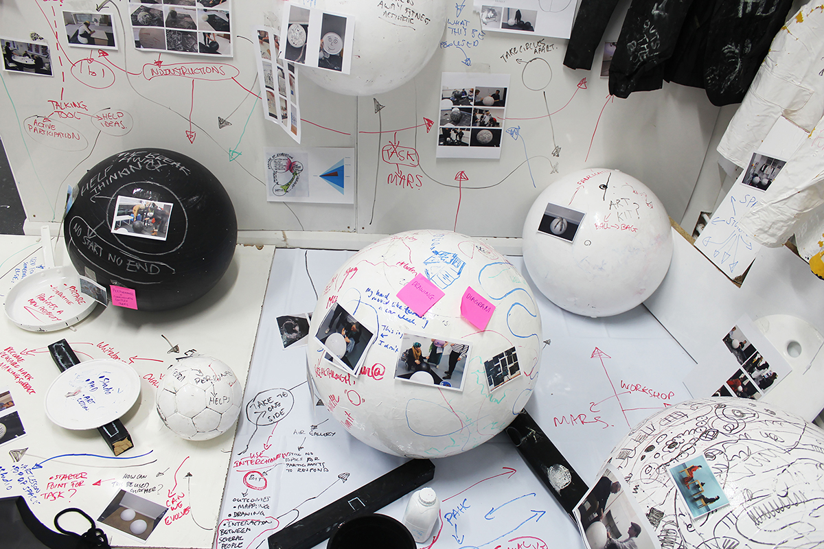 This practice-as-research merges art-thinking with interdisciplinary sources to reinvent conventional whiteboard and chalkboard surfaces into 3D forms, fostering alternative pathways in collective and individual thinking. Through sculpture, workshops, and drawing, active participation, mind-mapping, and idea generation are facilitated, proposing new methods for ideation and problem-solving.