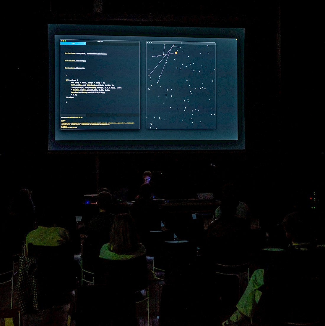 Besides the live-coded synthesis and building of networks, two other essential modes of control are employed. Configuring the context (initial states) and interfering (or blocking) the generated output. For all of the interaction modes, both manual commands and audio-driven operations can be used. This way of working introduces an operational space within which highly detailed synthesis interacts and clashes with generators of computational behaviours. ‘Streamlines’ was intended to question the concepts of generative activity, learning, inference, and network growth through an ongoing reconfiguration and live coding.