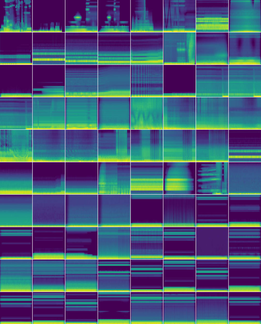 Assembling data for the approaches explored here is similar to an act of capturing snapshots; each data point is a frozen instance of an ongoing activity, a static representation of a process of a broader nature. The data-making process is, therefore, like a photographic session where one attempts to capture the subject from diverse angles to recreate a holistic image. Influenced by this attitude, I directed the learning processes chosen for Interstice towards image-based algorithms. This was also affected because many of the more interesting contemporary algorithms for deep learning and generative AI perform exceptionally well on image data. The approach I decided on would be to use the data points created for Interstice (described here above) but to record the audio output a parametric configuration produced. This audio would then be analysed as a spectrogram, and the pairing of the parametric configuration with the spectrogram image would be used as data for the next phase.