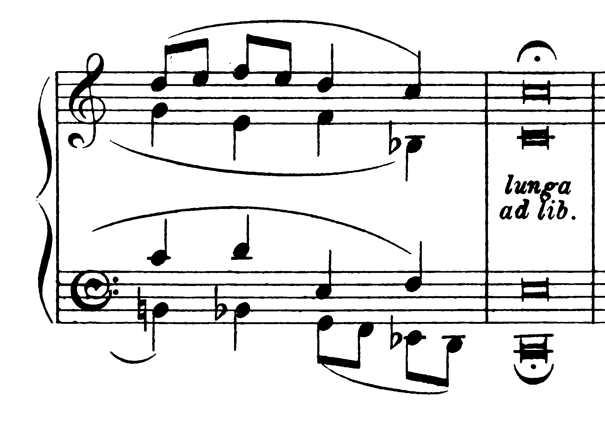 Here, we take a closer look at the ending track, Stravinsky's Grand Choral (mvt. no 7 from L'histoire du soldat, from 1918). When following their interpretation along with the sheet music, it’s clear that the group follows the written lines closely to Stravinsky’s score, where the improvisations that take place generally occurs at the fermata points in the music. As Cole (2015) describes it, the group ”pause at various climactic moments to improvise joyfully for a few seconds before returning to the source work. These additions allow the musicians and the audience to ruminate on these emotional moments a little longer" (p. 36). The notation even have the instruction ”lunga ad lib” written out – i.e. held for open duration – which here seems to prompt Douglas and his co-musicians to take the step into collective, open improvisations. Thus, Douglas, in a way, utilize an openness that is already present in the score. It’s not implausible that Douglas’ group is basing its work of a piano version of the music – such as in the example below – to avoid being restricted by aspects related to instrumentation from the full score, e.g. details such as clefs and transpositions for specific instruments.