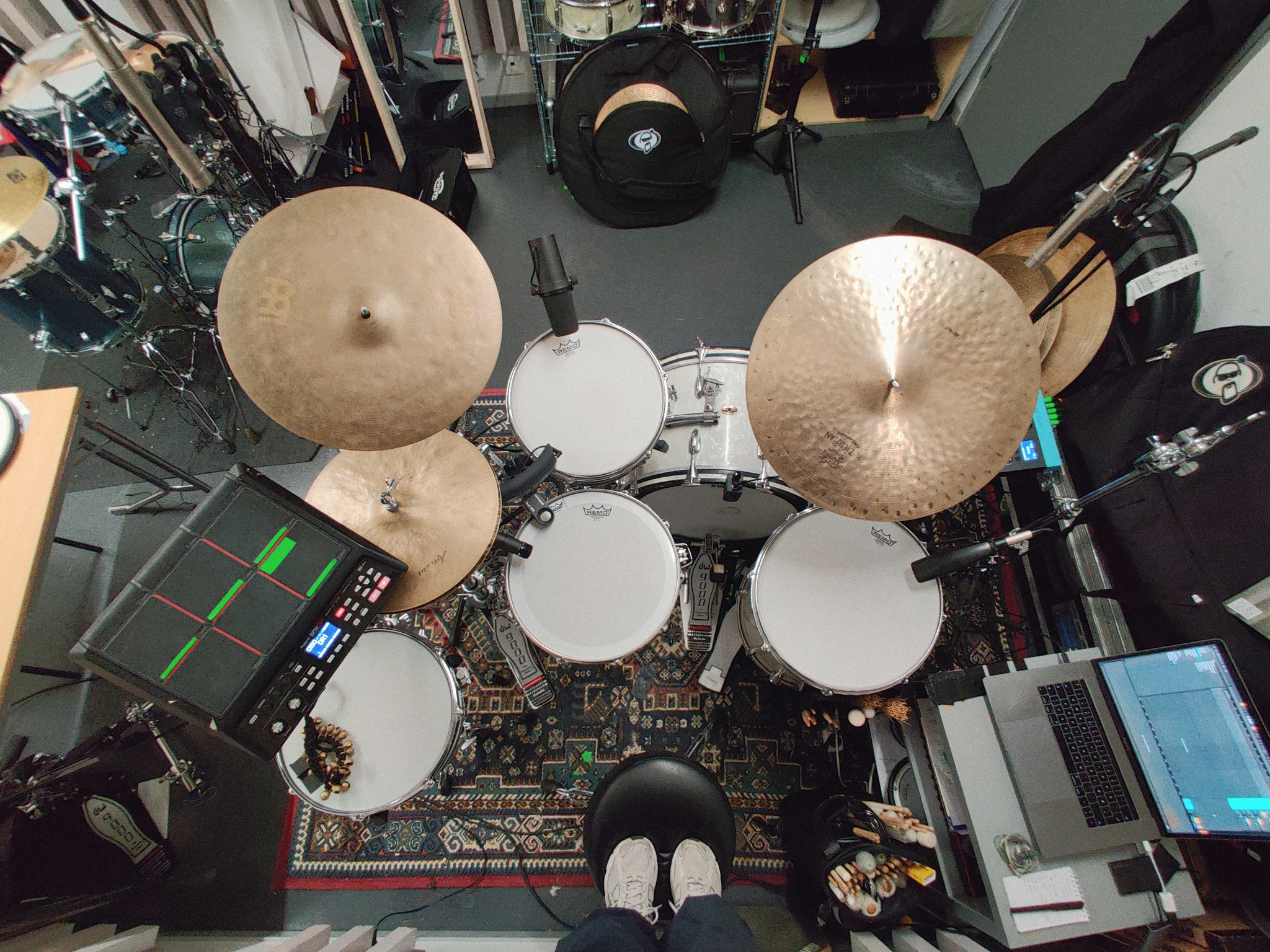 Dette er perklydene jeg brukte tidlig i prosessen - august 2023.DR-1 er lydene jeg spilte fra SPD-SX, og TM-6 70 fra den andre Roland-modulen.