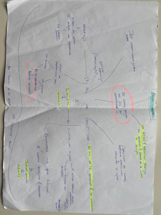 Hij heeft zijn script ook nog in zijn bezit en heeft dit nog "minstens twee keer" gelezen. Ik moet lachen met deze verwoording. Twee keer dus. Ook hem geef ik de tip om misschien zelf nog eens zo een script te schrijven, maar hij geeft aan dat hij dat niet alleen zou kunnen. Het was juist de co-creatie en sterkte van de groep die hem tot dat resultaat heeft gebracht. Vrijheid van geest is dan ook een collectief proces zoals Freire meegeeft.