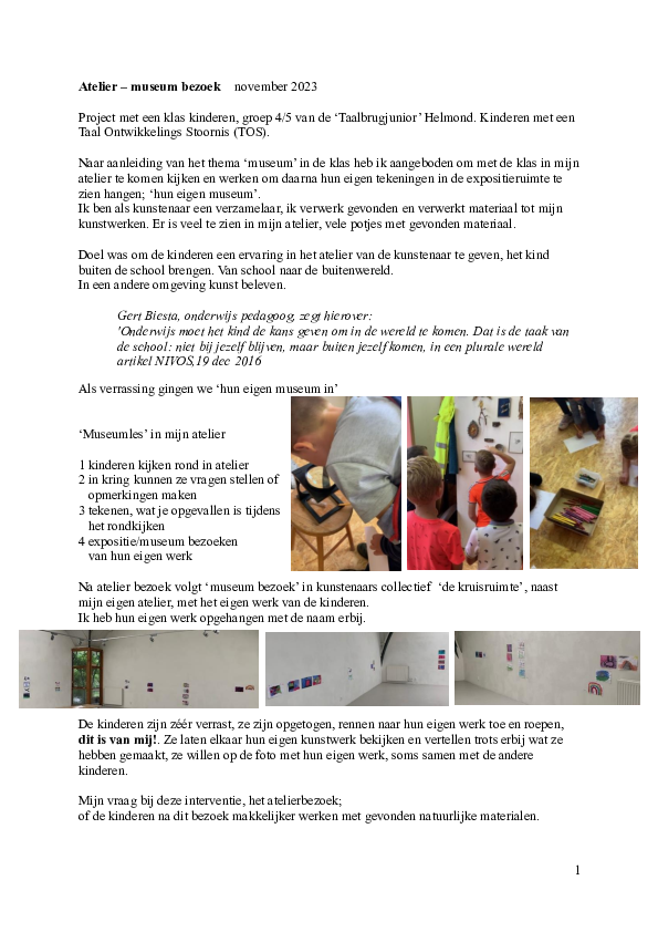 Kinderen zijn na dit atelierbezoek meer open naar mij toe op school.
