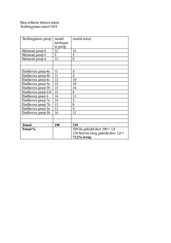 - 21 kinderen kwamen een week later nog met het formulier en wilden het graag bespreken.