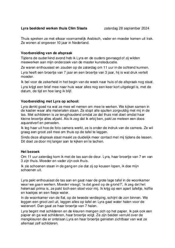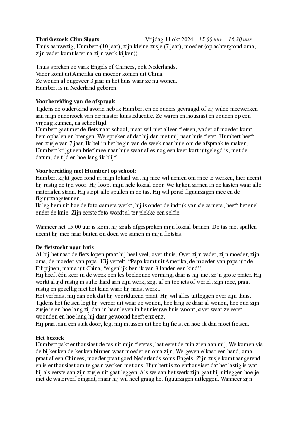 Bij alle vijf de bezoeken ben ik warm ontvangen. Elk gezin werkte op zijn eigen manier samen, en het was bijzonder om daar deel van uit te mogen maken. Deze ervaringen zal ik niet vergeten. Wanneer ik het kind later op school zie, denk ik meteen terug aan deze momenten.
