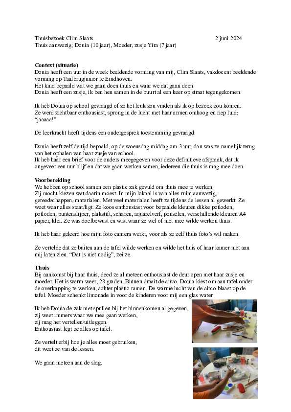 Elke keer als ik Douia tegenkom binnen de school, roept ze hard: "Jij was bij mij!" Haar enthousiasme spat ervan af. Ze herinnert zich veel wanneer ze het op dat moment tegen anderen vertelt. De ervaring van thuis helpt haar de herinnering op te halen.