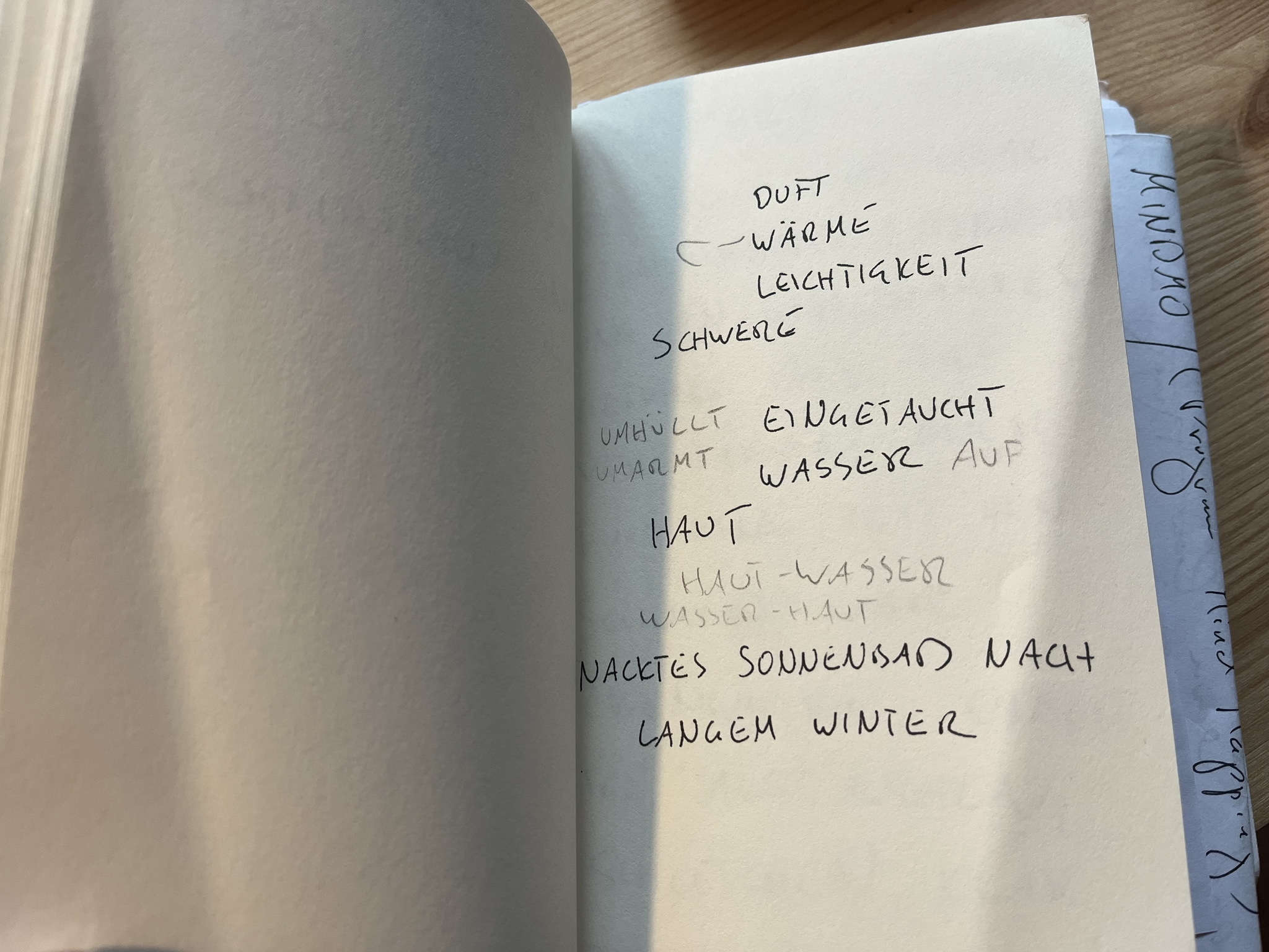 In a writing course in 2021 with Merete Morken Andersen, I learned to write without correction. I learned to jot down thoughts as quickly as possible, even if not beautifully. After a few days, I went through the texts and sorted out the ones that didn't really correspond to the expression of the chords or seemed to long or with too many words. What remained were small jewels or aspects of an expression that I then tried to arrange as musically as possible. The result were the poems found in each chapter.