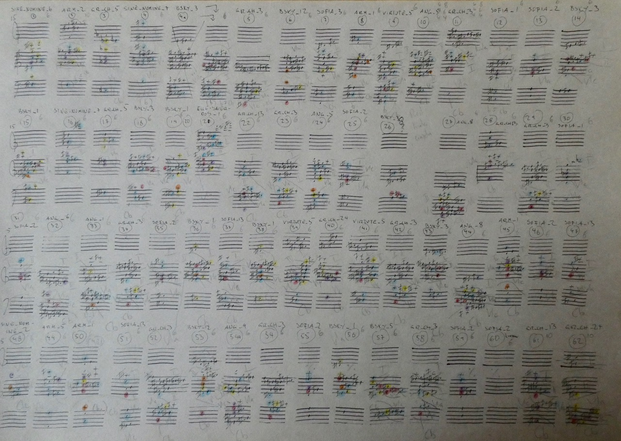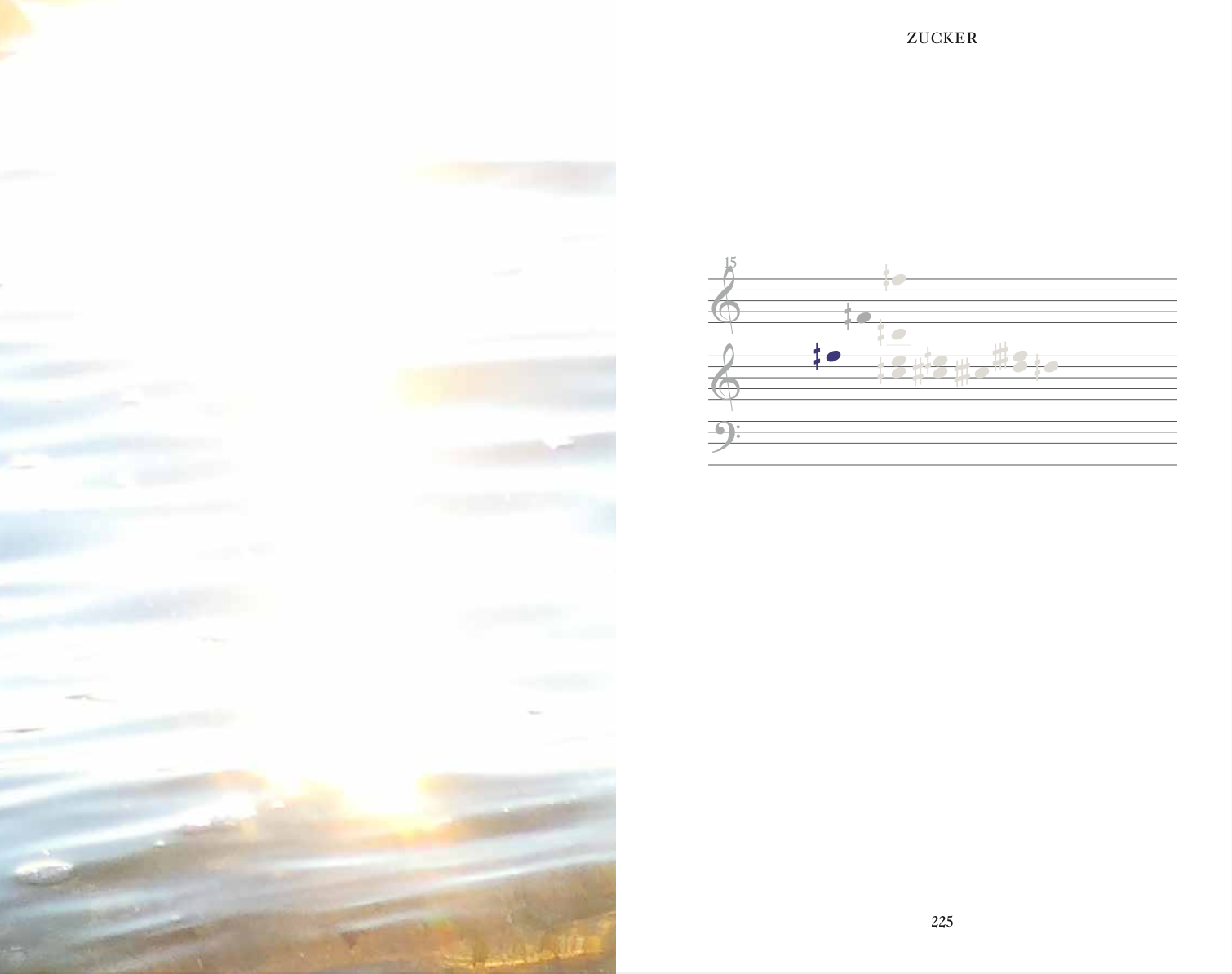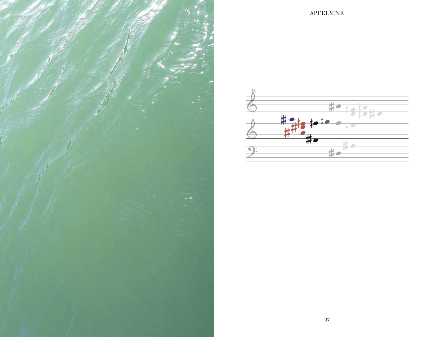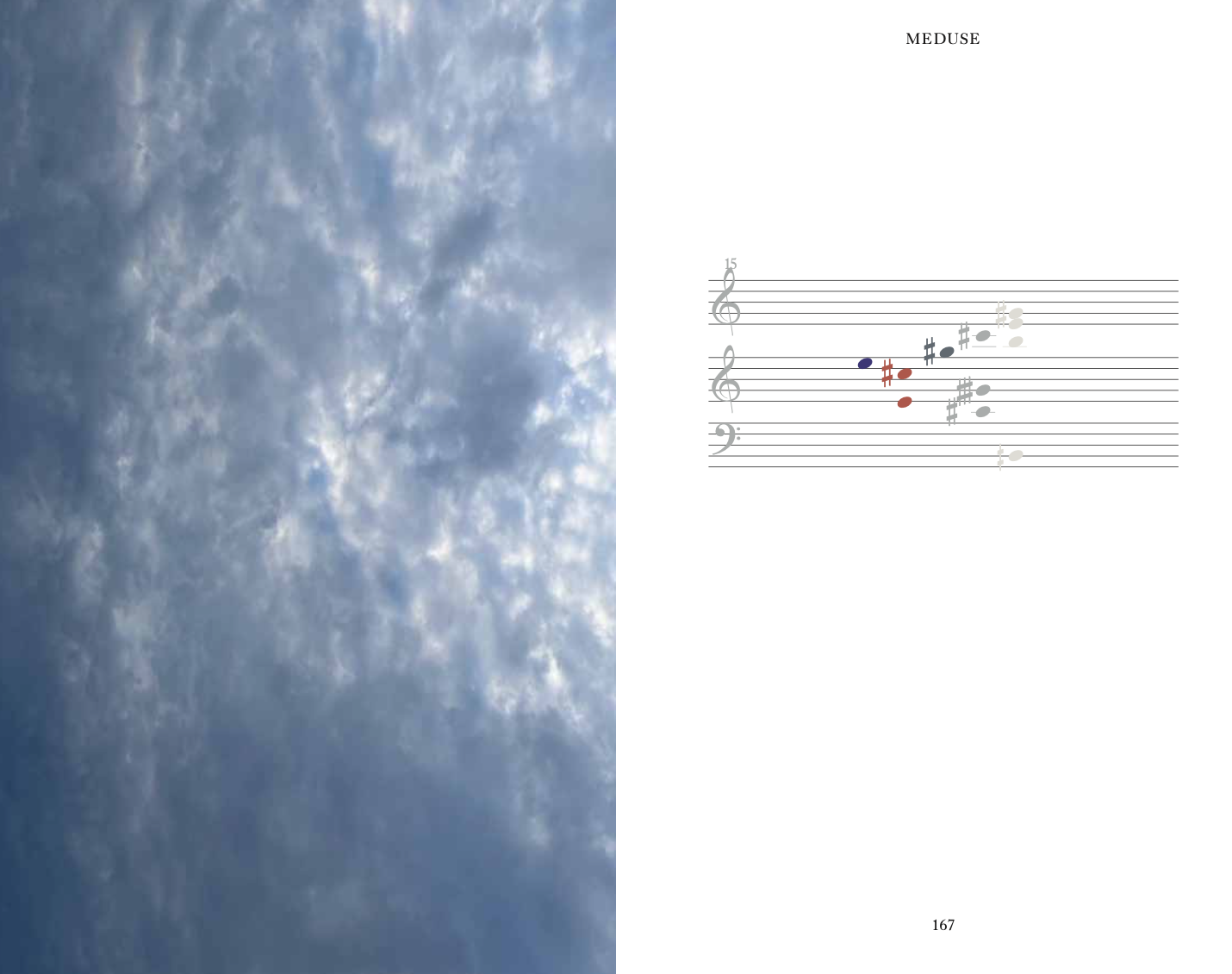 The piece begins with a layer of chords in the strings from the chapters "PETROLIO" and "REMEMORY". Despite their respective idiosyncratic expressive power, they form, in my mind, a sort of ice layer beneath, in which the musical material in the second violins moves, interrupted by a kind of harmonization in the rear desks of the string sections.