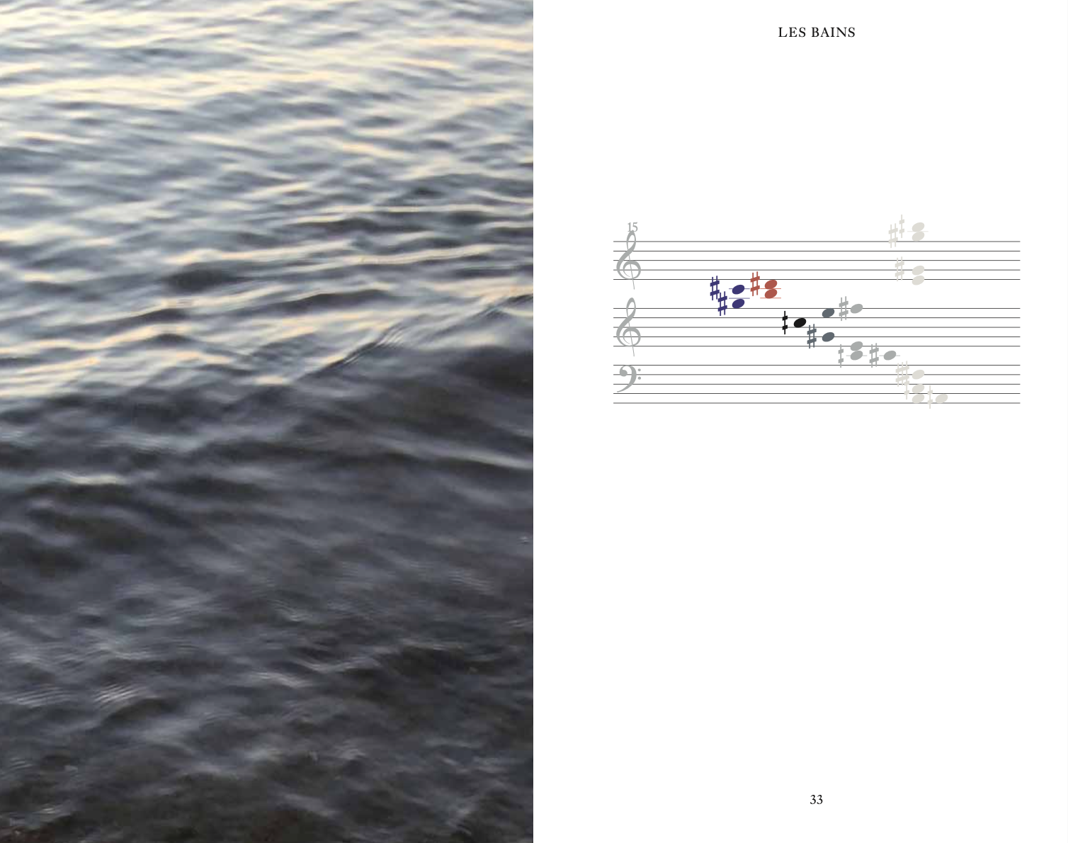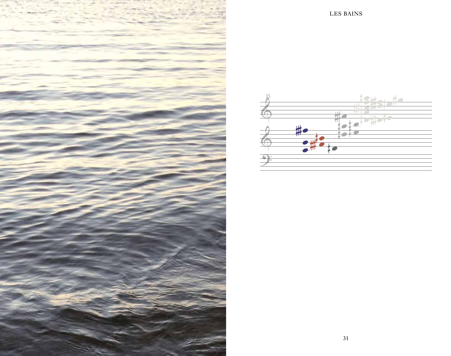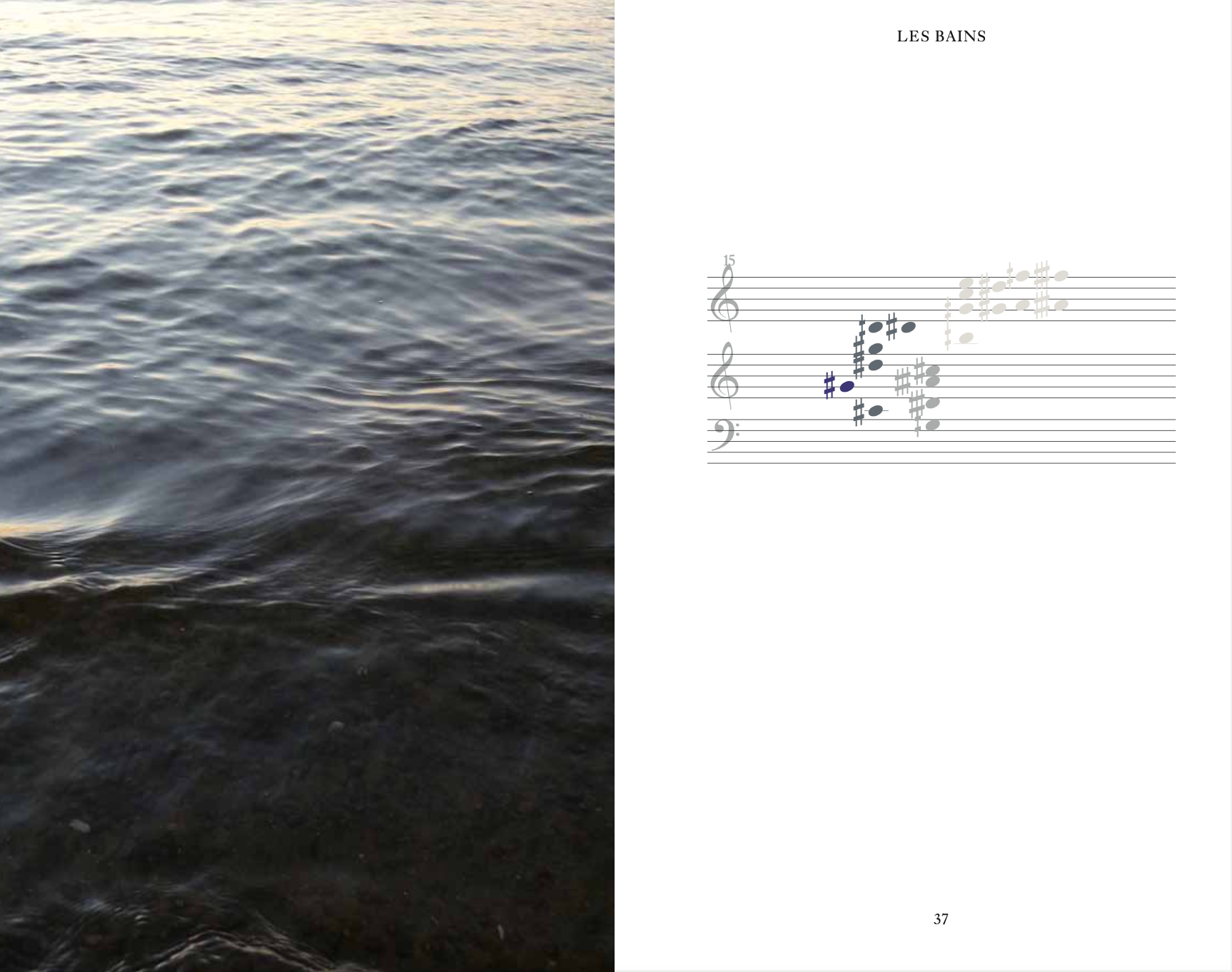 The chords from the book BOOK OF CHORDS play a central role in these pieces. Some of them are old chords that I found 2017 for example, like GLORIA and GEBET, and I reuse them. Some are chords that I recently searched for specifically for a piece. For instance, I searched for the chords from the chapter LES BAINS for the piece NEROLI (2021). A chord group with a warm, physical and enveloping expression which qualities I try to capture in the referring poem and photographs to the chord group. If I were to search for this expression again in the future, I can refer back to these chords. If I'm looking for an expression that isn't yet in my catalogue, I will search again. So, it's the expression that I have in mind that comes first, then the search for the right chords and after, I can write the piece.