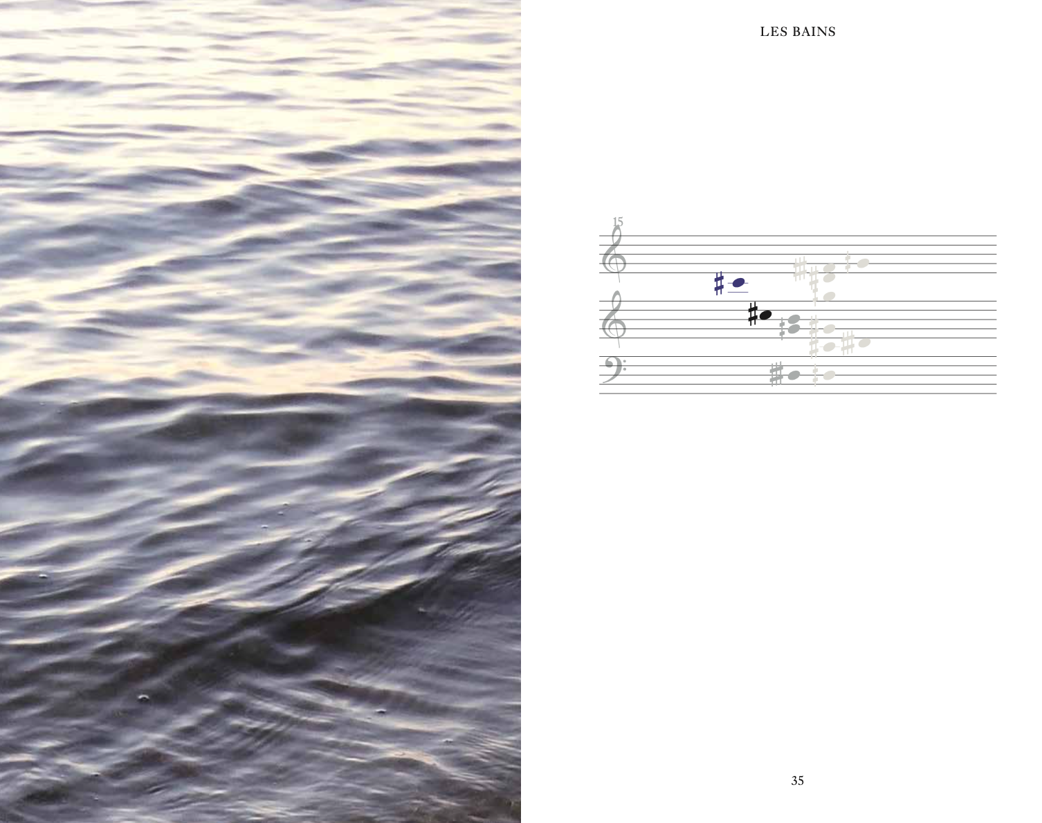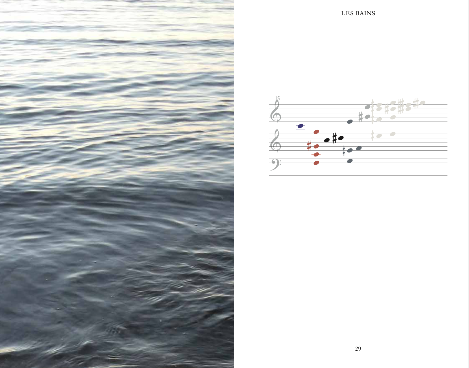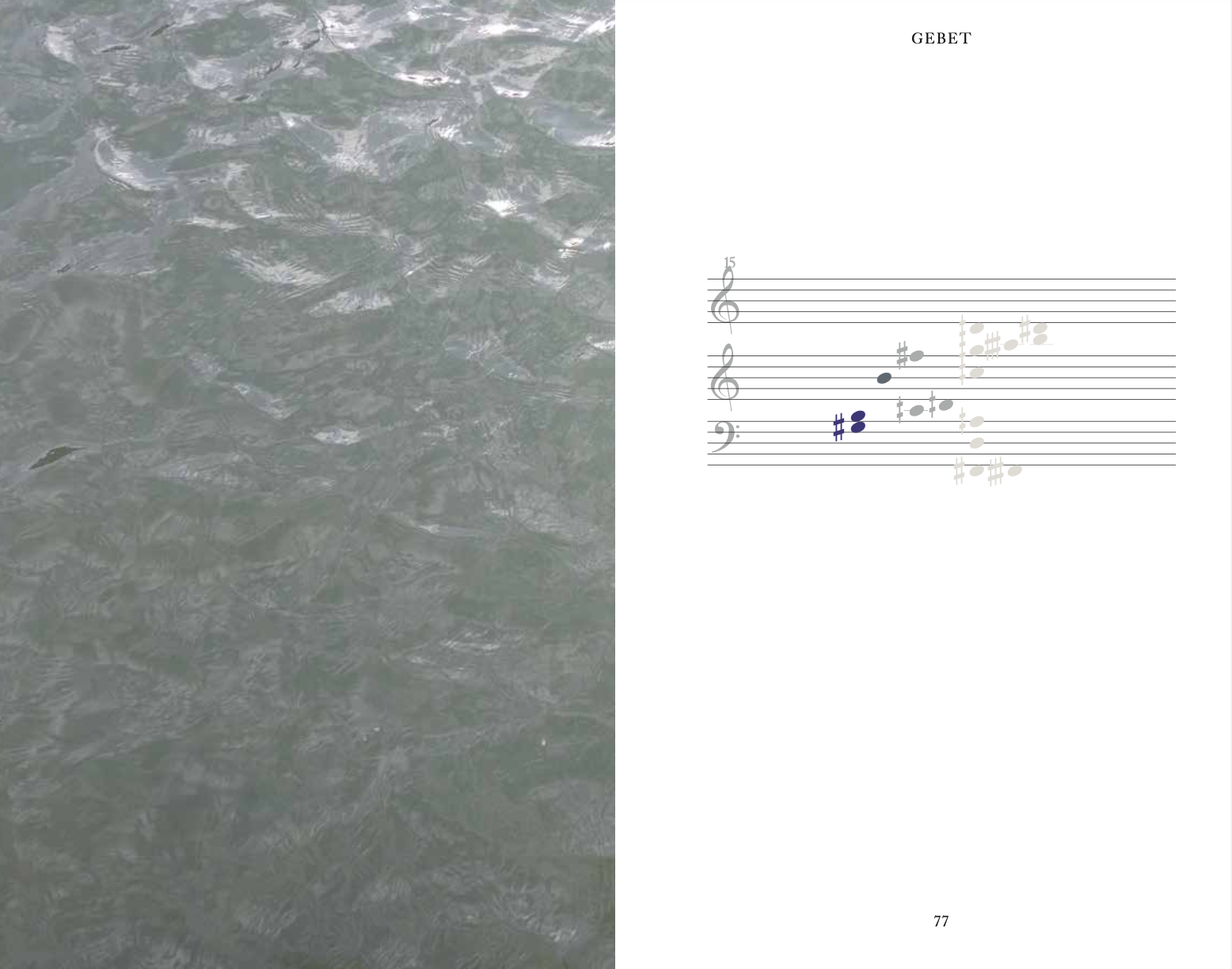 The chords from the book BOOK OF CHORDS play a central role in these pieces. Some of them are old chords that I found 2017 for example, like GLORIA and GEBET, and I reuse them. Some are chords that I recently searched for specifically for a piece. For instance, I searched for the chords from the chapter LES BAINS for the piece NEROLI (2021). A chord group with a warm, physical and enveloping expression which qualities I try to capture in the referring poem and photographs to the chord group. If I were to search for this expression again in the future, I can refer back to these chords. If I'm looking for an expression that isn't yet in my catalogue, I will search again. So, it's the expression that I have in mind that comes first, then the search for the right chords and after, I can write the piece.