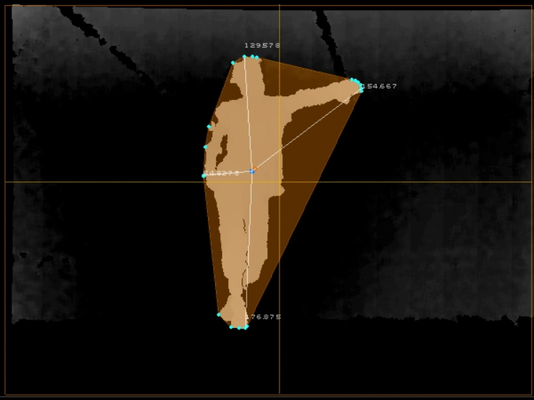 'Moving Music': sceen capture of the body-silhouette analysis used for spatial sound positioning; rehearsal 09/07/2015 (click to enlarge).