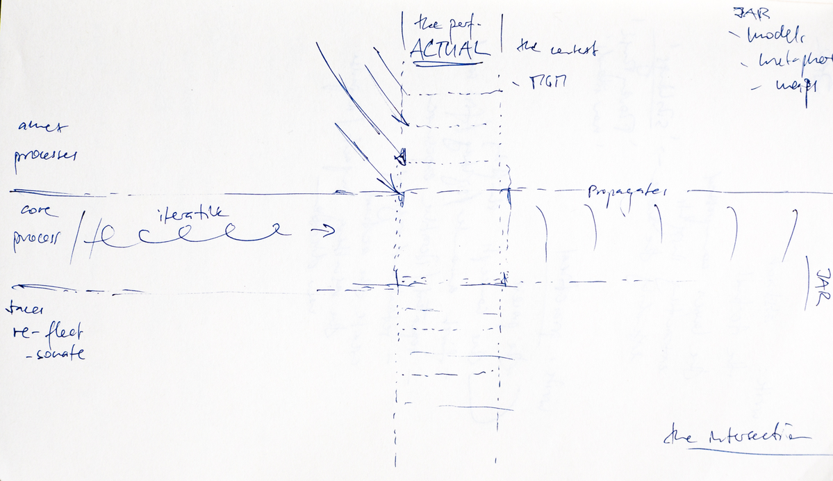 Sketch of the intersection of time in iterative preparations and performance (click to enlarge).