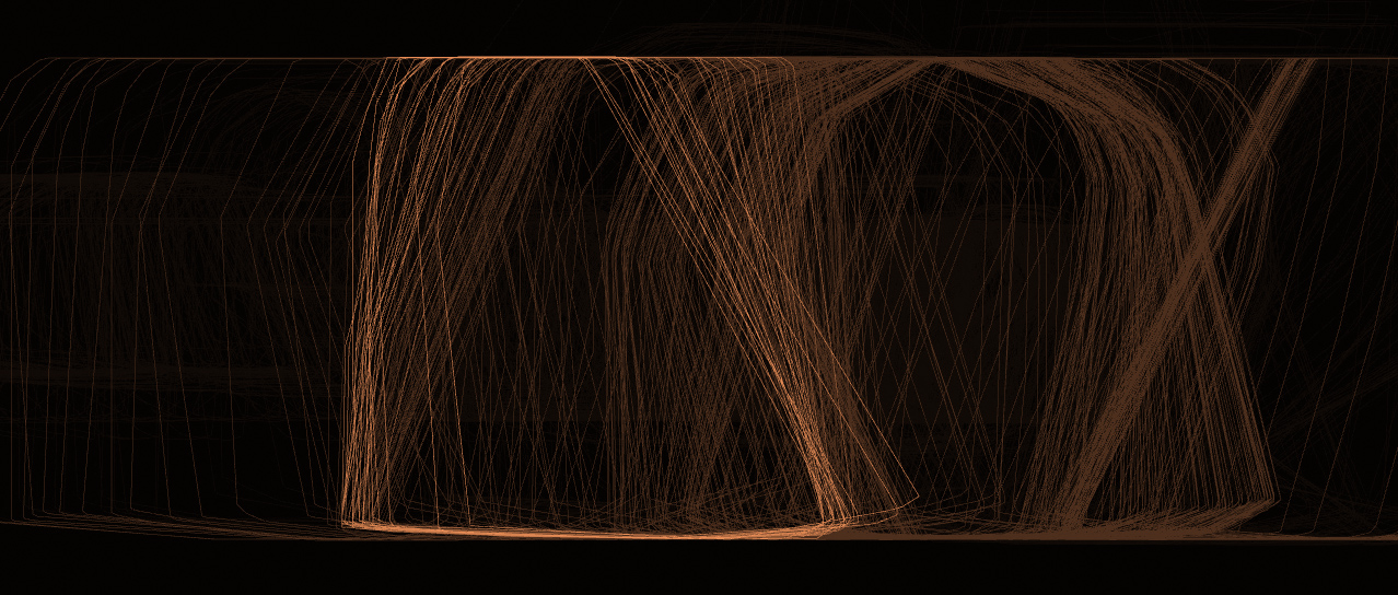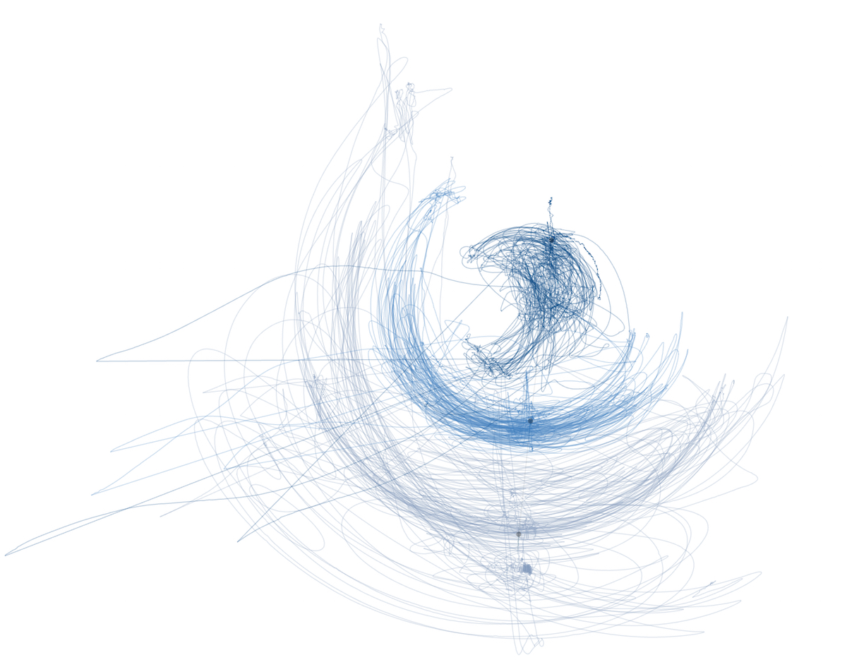 Double Vortex – motion-capture trace of entire piece, top view; movement study 30 November 2015.