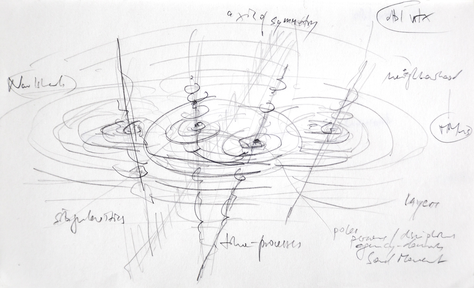 A sketch depicting a temporal form of a section of Double Vortex in the 2015 version (click to enlarge).