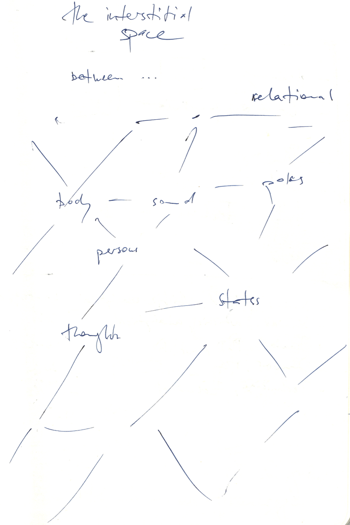 Paper-based sketches such as drawings, diagrams, maps, and collections of key terms are generated before, during, and after the development process in the collaborative working sessions. These graphical arrangements provide a support for metaphorical, visual thinking (Arnheim 1980), by using structures in the visual domain to think and communicate about the organisation of materials and processes. Sketches maintain a fleeting, ephemeral quality until the ideas they contain have been experienced, evaluated, and deemed worthy of keeping.