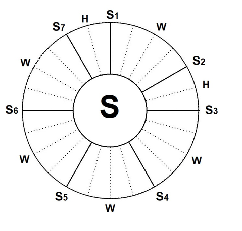 | O1: | 1 | 2 | b3 | 4 | 5 | 6 | b7 |