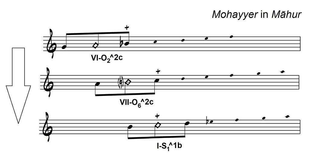 A visual comparison video between two melodic figures of the same 'māyeh' (namely 4b), each referring to a different modal circle.