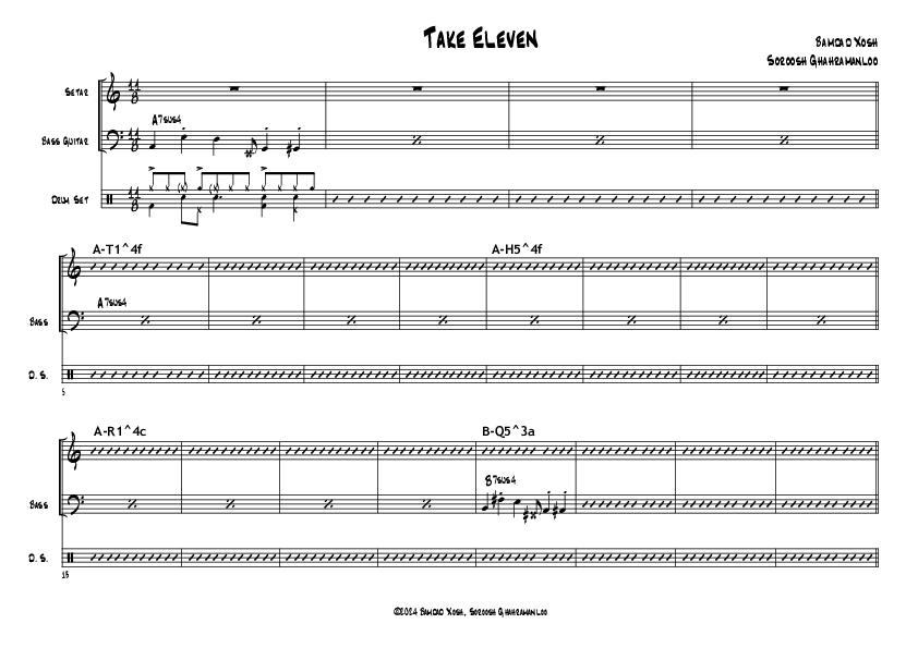 Presented here is an example where the Setar player, Soroosh Ghahramanloo, improvises over accompanying bass and drums, utilizing the appropriate modal notations as determined by the composer, Bamdad Xosh.