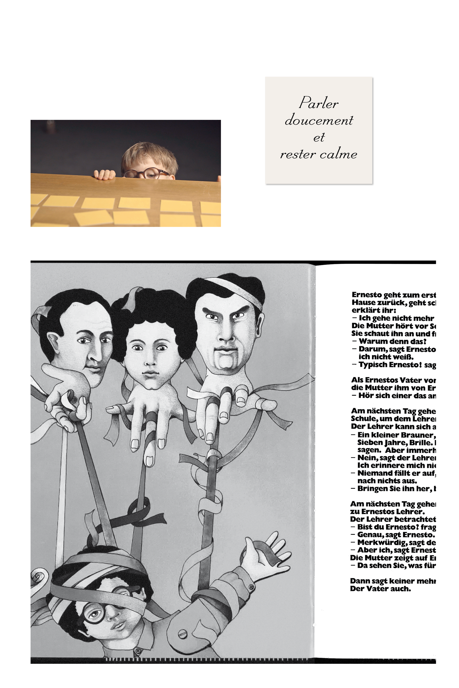 Bringing in the camera into the moment of encounter as an object of shared attention took on a particularly transformative quality in the case study with Jacob, the little boy. In contrast with traditional digital cameras or smartphones, both devices with which Jacob is familiar from his everyday life, the looking glass camera is a curiosity for him. Like a face, the two eyes of the twin-lens look out from the front, one above the other. Like a lantern, the compact body of the camera can be placed nearby on the table or the floor. For me, too, the camera took on a kind of presence or life of its own: rather than having particular expectations of the ‘scene’, of the image quality, of the potential meaningfulness of the recording, etc., I primarily let myself be drawn into Jacob’s games, and the looking glass camera was drawn in too. The camera captures traces of these games and is at the same time part of the filming dispositif. At this moment, it is no longer primarily documenting what is happening, but reminding Jacob and me of our roles: I am making a film and he is playing (a part in that). That was the initial situation in which we met. Even if I sometimes placed a second (digital) camera further away, recording a long shot of the whole situation, the medium-format camera in front of my body still marked me out as the filmmaker, and I was always recognizable as such for Jacob. This could have contributed to the fact that he dealt with the filming situation very consciously and confidently. At any rate, he developed strategies from the first moment on to sound out the power relations implicit in filmmaking, to undermine them, manipulate them or shape them [L is for Leeway, for Lightsaber, for Loopholes].