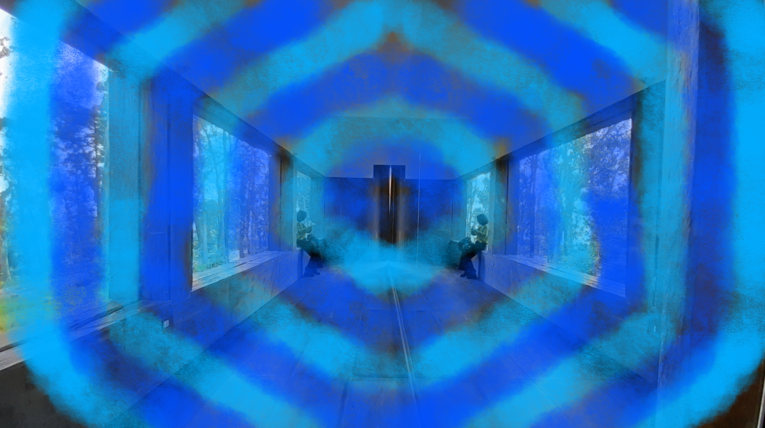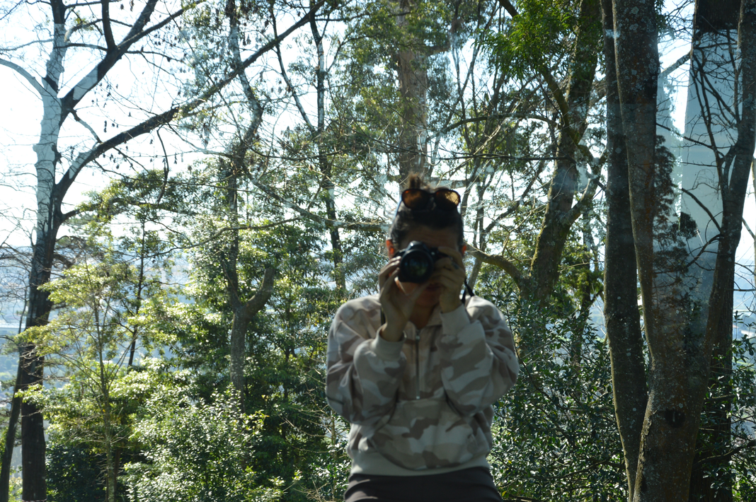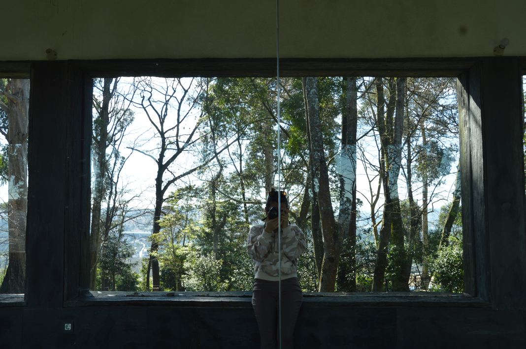 The idea of working with the mirror reminded me of the Kaleidoscope, which symmetrically reflects coloured objects in motion, and made me think of the fragmentation and reconstruction of reflections that the eye perceives. So I thought that if instead of moving objects, the viewer would see himself inside the reflected forest, it would be like seeing his own fragmented self, a kind of disintegration of the ego inside the echo, that is, inside nature. The effect of feeling and seeing oneself as a fragment within the forest, becoming part of it, disintegrating one's 'narcissism' made me think about the concept of the work.