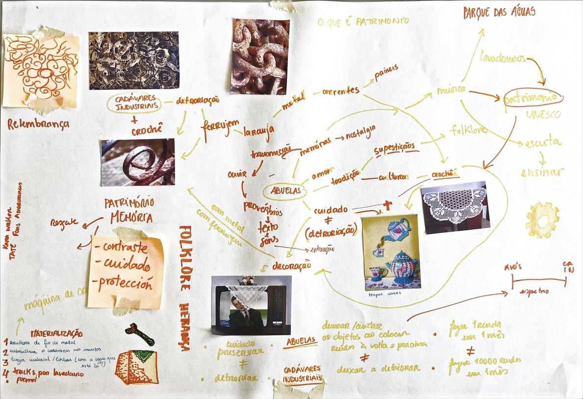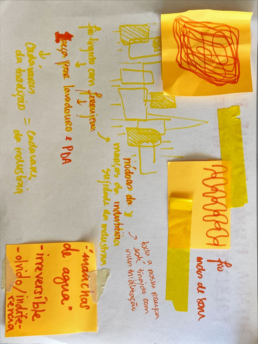 Dado um interesse comum pela memória e pelo contraste entre a tradição e a modernidade, o manual e o industrial, surge o projecto nódoas de água. Querer representar uma disnomia entre as nódoas como marca ou traço, da indústria, da história, do irreversível e a água como algo em mudança, que não permanece. Fazendo-nos refletir sobre o esquecimento, a perda dos costumes e a invisibilidade sofrida, muitas vezes, pelas mulheres. A partir destas ideias queremos propor diferentes formas de preservar e tornar visíveis as costumes, que por um lado podem ser através da prática ou através do ensino e da documentação.