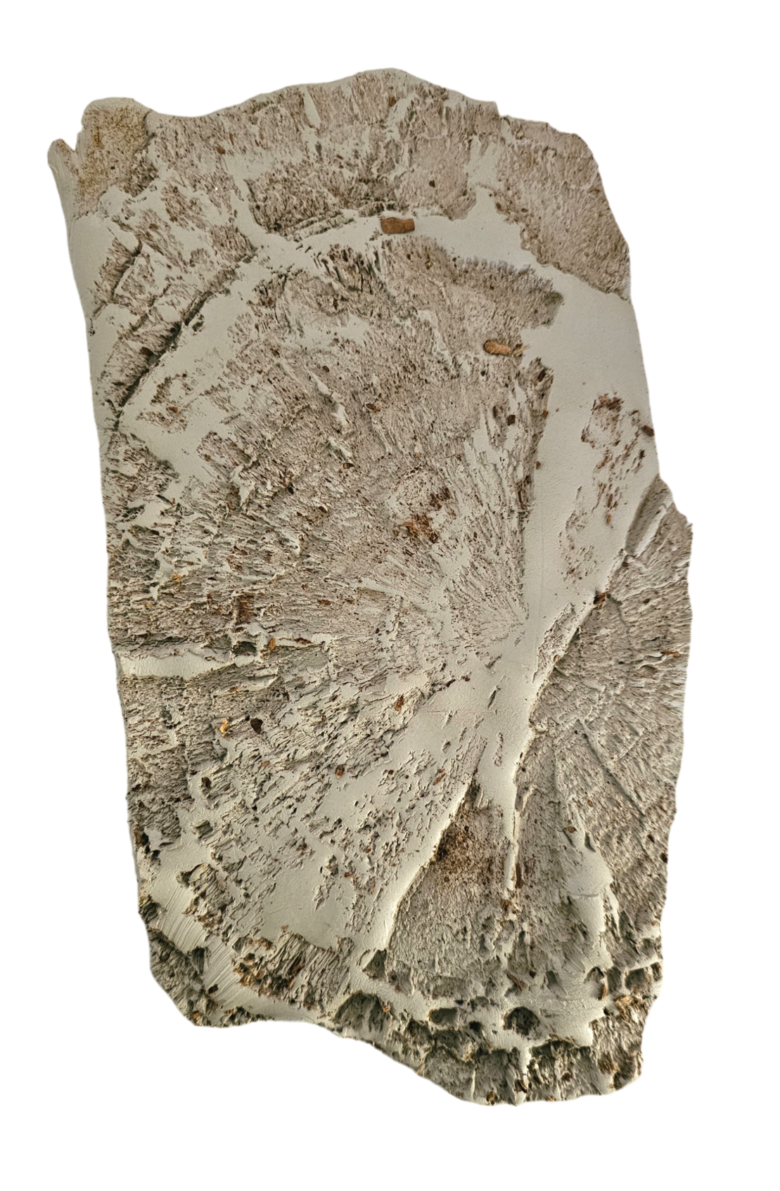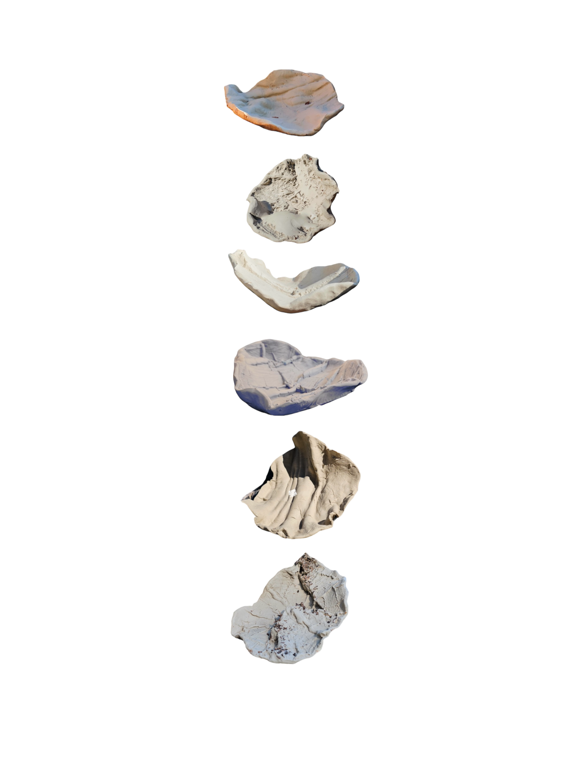 Após a escolha de um tronco (ao qual nós o nomeamos de "Mamute") que se encontra no Parque das Águas, no Porto, procurou-se por realizar diversos negativos de partes com alguma expressividade plástica, através de lastras de barro. A materialidade dos objetos deve-se a uma relação de proximidade de tons, pois através de vidrados, podesse manipular os efeitos pretendidos, como a relação de proximidade e de camuflagem no espaço. O conjunto de 6 fragementos distribuídas pelo tronco espaço, como um ato posteriormente realizado, procura pelo menor impacto visual no terreno e pela metáfora da ação de devolver a parte ao todo, o elemento como receptáculo de agua, a água ao "Mamute", oferecendo-lhe vida novamente.